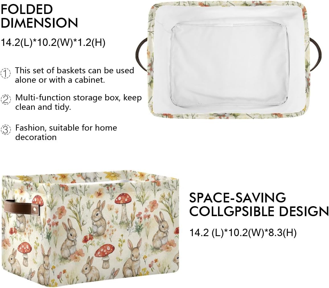 Easter Mushroom Rabbit Rectangular Storage Basket Organizer Bin Shelf Baskets For Clothes Gifts For Home Office Dorm