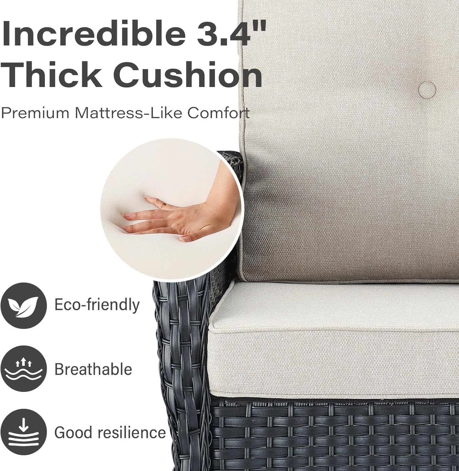 - Sturdy & Durable Construction: Made with a rust-resistant powder-coated steel frame and hand-woven PE wicker, this outdoor patio furniture set is built to last in all weather conditions. The high-density foam cushions are wrapped in fade-resistant, easy-to-clean fabric for long-term use and minimal maintenance.