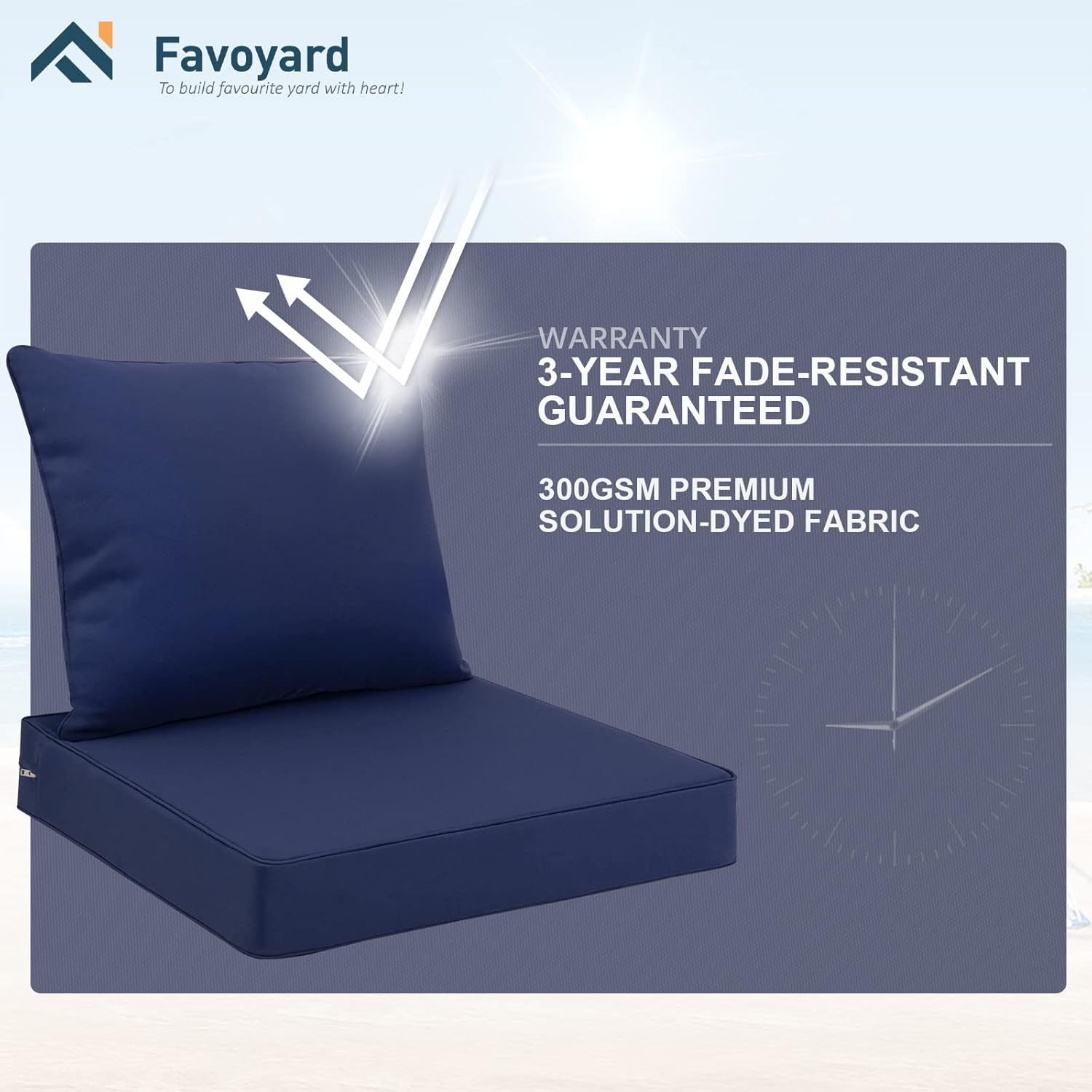 - Double-Waterproof Tech Cushion Cover: Favoyard outdoor cushions for patio furniture choose 300GSM high density polyester fabric for the cover could provide excellent waterproof and dust resistance ability. In addition, there is a TPU coating on the reverse side of the fabric. Both the TPU coating and the fabric are highly waterproof.