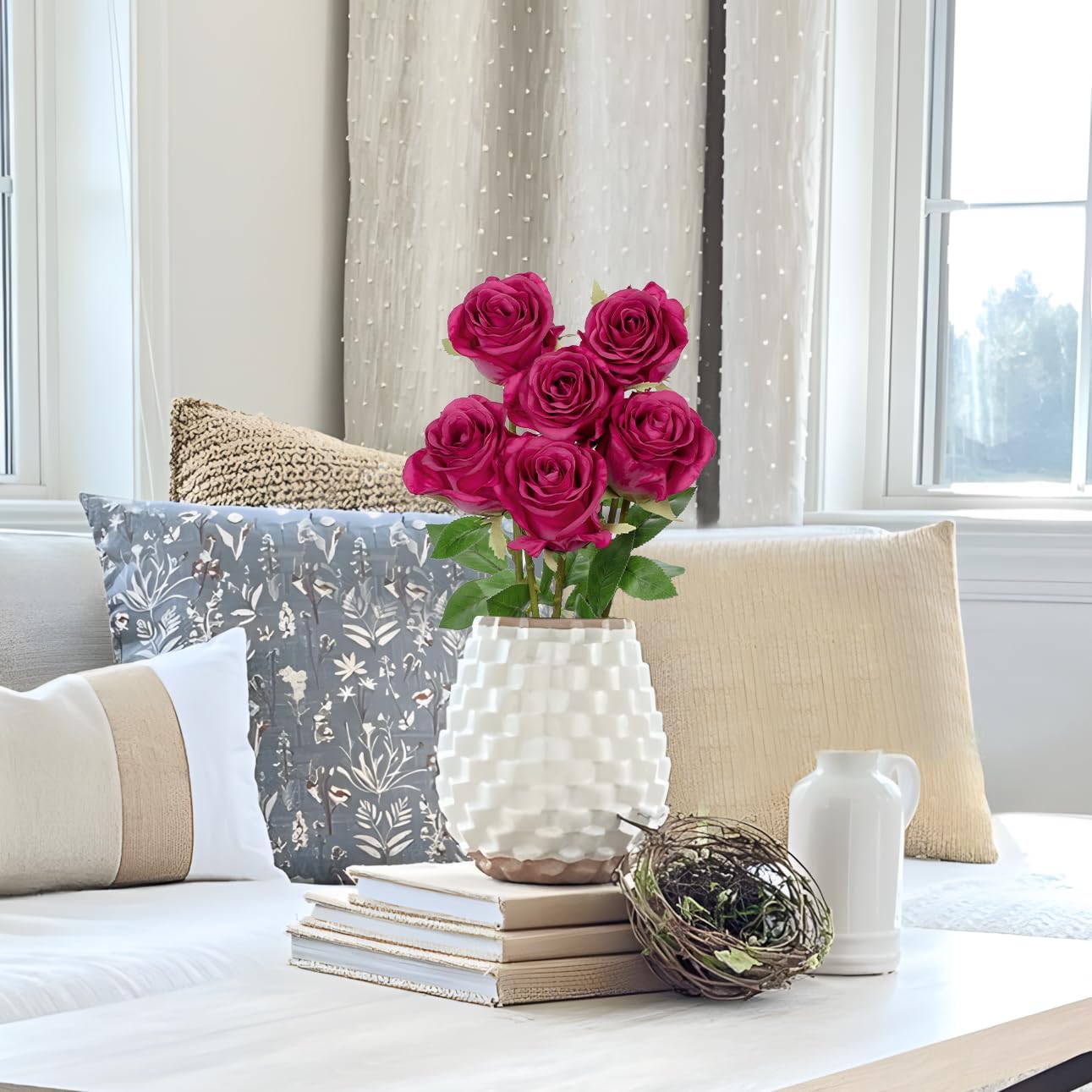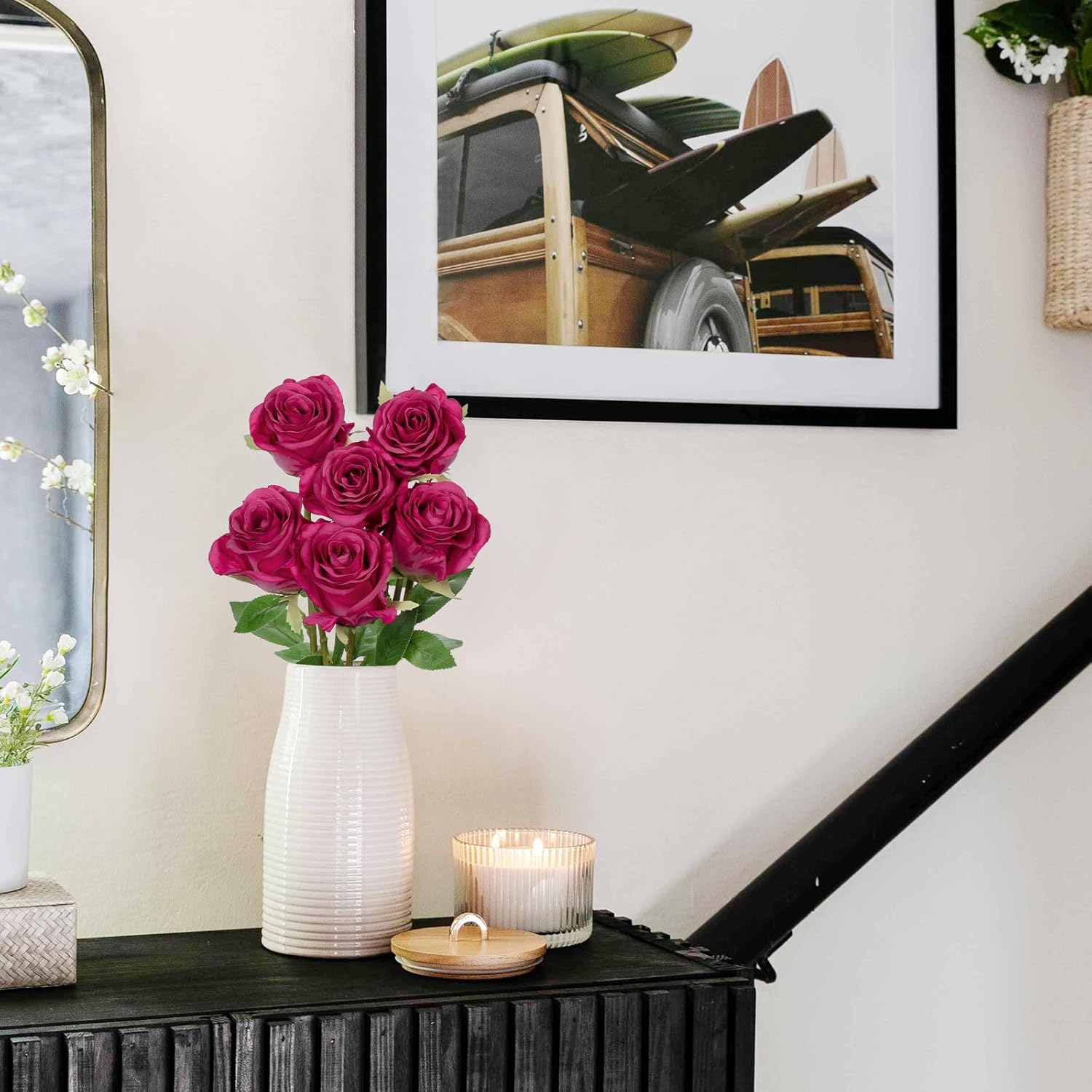 Briful Hot Pink Artificial Roses – 6PCS 18.9" Silk Rose Faux Flowers with Long Stems Realistic Fake Rose Bouquet for DIY Wedding Arrangements Table Vase Centerpieces Home Event Decor