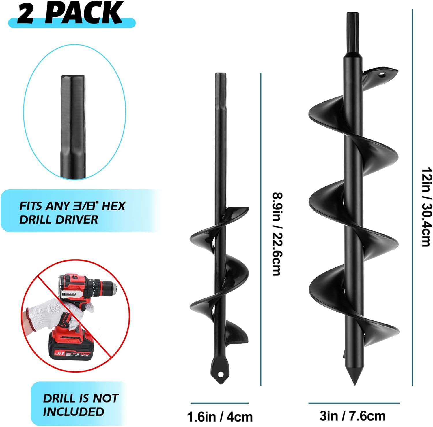 - EXCELLENT DESIGN: This planting auger for drill features enhanced upgraded blades and a helical design that ensures faster, less laborious drilling and greatly improves gardening efficiency. The heavy-duty solid shaft can be used in a wide range of soils