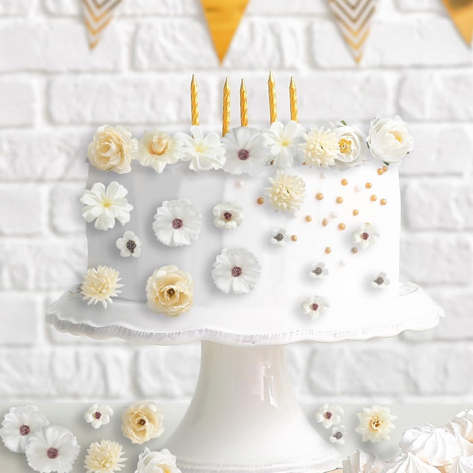 Faux Flower Heads Small Silk Artificial Flower DIY Fake Mini Flowers Rose Daisy Multicolor Flowers Craft Supplies for Wedding Party Wreath Graduation Season Party Home Decor (45, White)