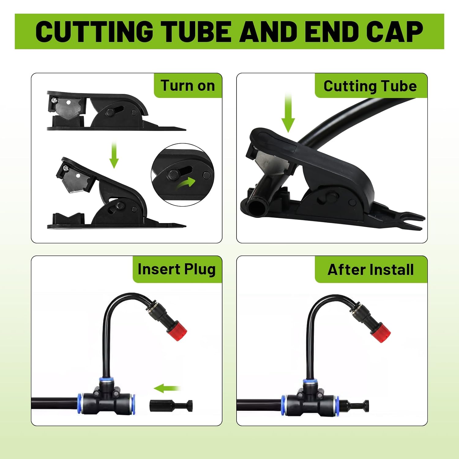 - Durable Black Water Pipe, Long-lasting and Efficient: Our garden watering system is equipped with a 100-foot long, sturdy and durable black water pipe, specifically designed for outdoor use. This water pipe is made of advanced anti-aging materials and has excellent anti-oxidation properties. It can effectively withstand high temperatures and extreme cold, and will not deform or break even in harsh environments. Whether it is for irrigating a large lawn or carefully tending to flower plantings, this durable water pipe can ensure a reliable water flow supply to meet all your drip irrigation needs.
