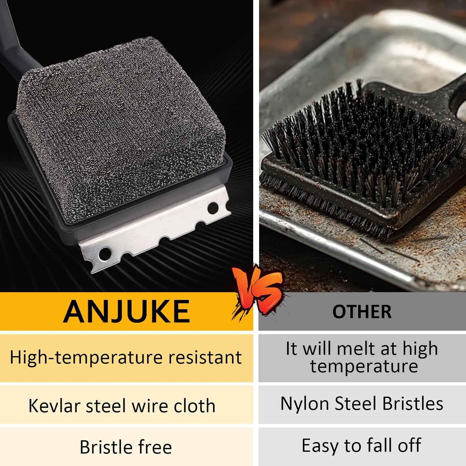 - 【Safe & Bristle-Free】The grill brush replacement head made with Kevlar fabric and aramid steel wire cloth, has no dangerous wire bristles or spikes that won't fall off and get into food, not only effectively stopping the spread of flames, but also removing dirt and oxides from the surface of the grill.