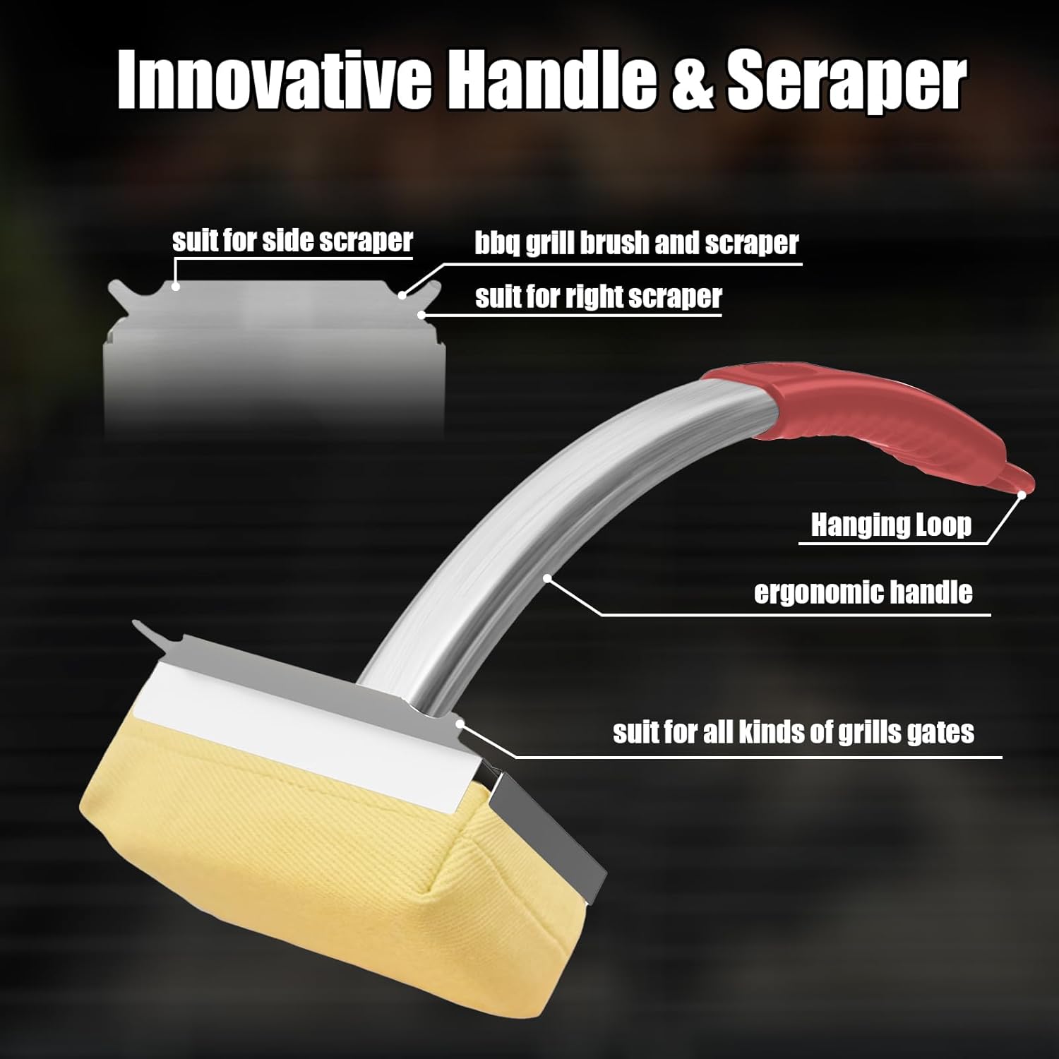 - Ease of Cleaning: Featuring heavy duty, food grade grill brush non metal bristles,this grill brush bristle free is designed for thorough cleaning.the notched edges of the scraper access between and beneath the grill grates, ensuring a deep clean that removes grease, char and food residue.every use leaves your bbq grill brush available for the next cookout,so you can love a new start every time