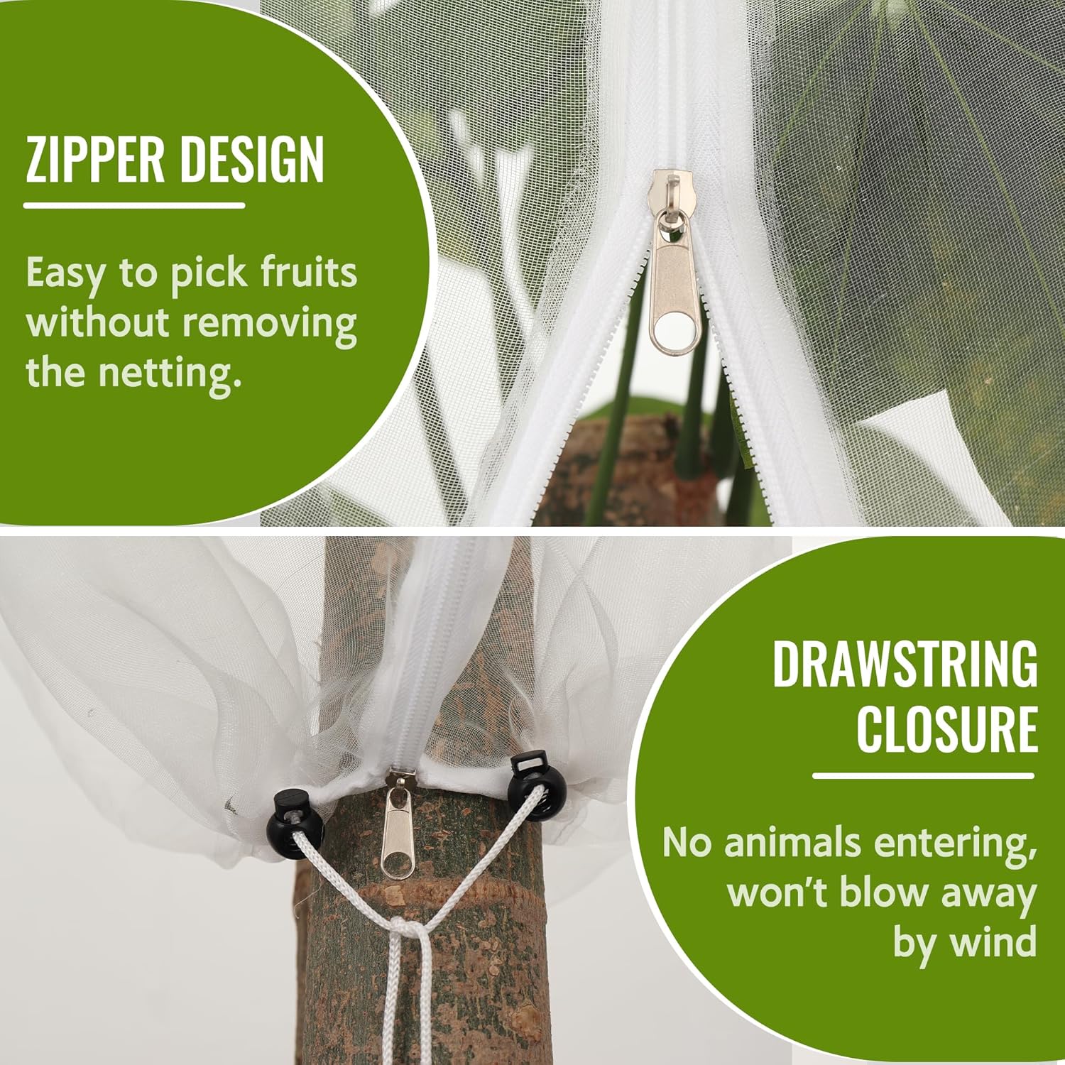 2 Pack Fruit Tree Netting Bags with Zipper and Drawstring, 4 x 5ft Ultra Fine Mesh Garden Netting Plant Cover, Bird Netting for Blueberry Bushes, Fruit Trees, Flowers (White, 4 x 5 ft)