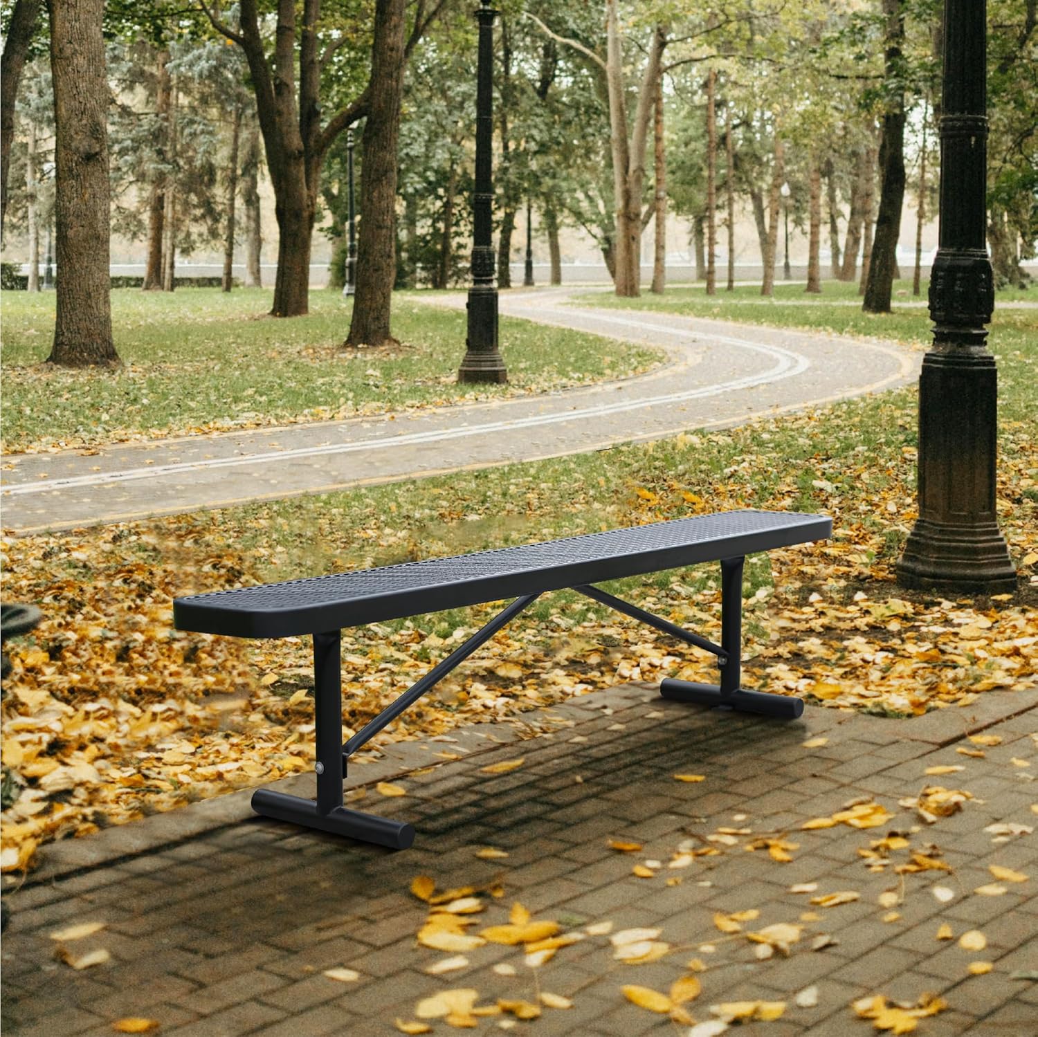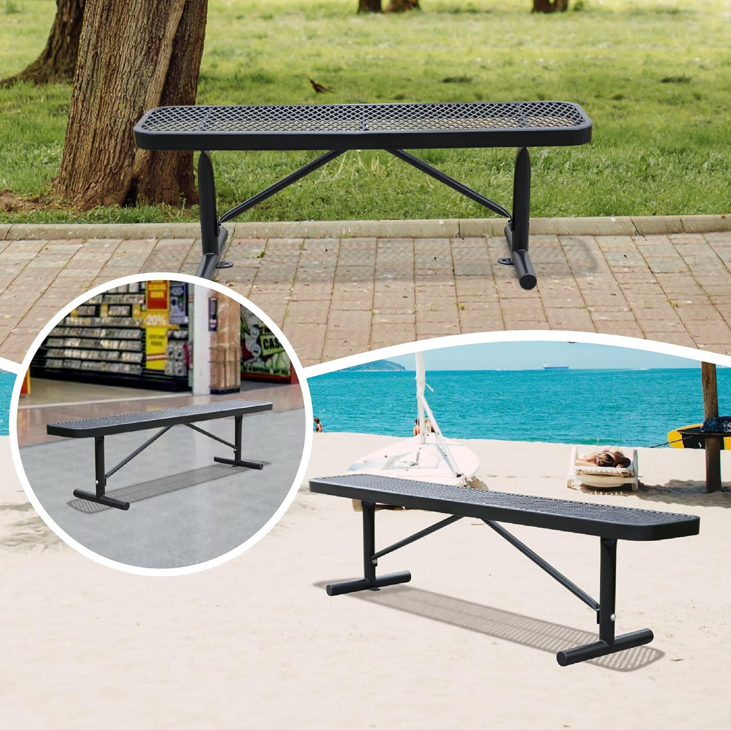 72" L Steel Flat Bench Garden Bench, Black Outdoor Park Bench Weather-Resistant Steel Metal, Patio Seating for Front Porch Backyard Park Outside, Metal Benches for Outside to dodrill to Ground
