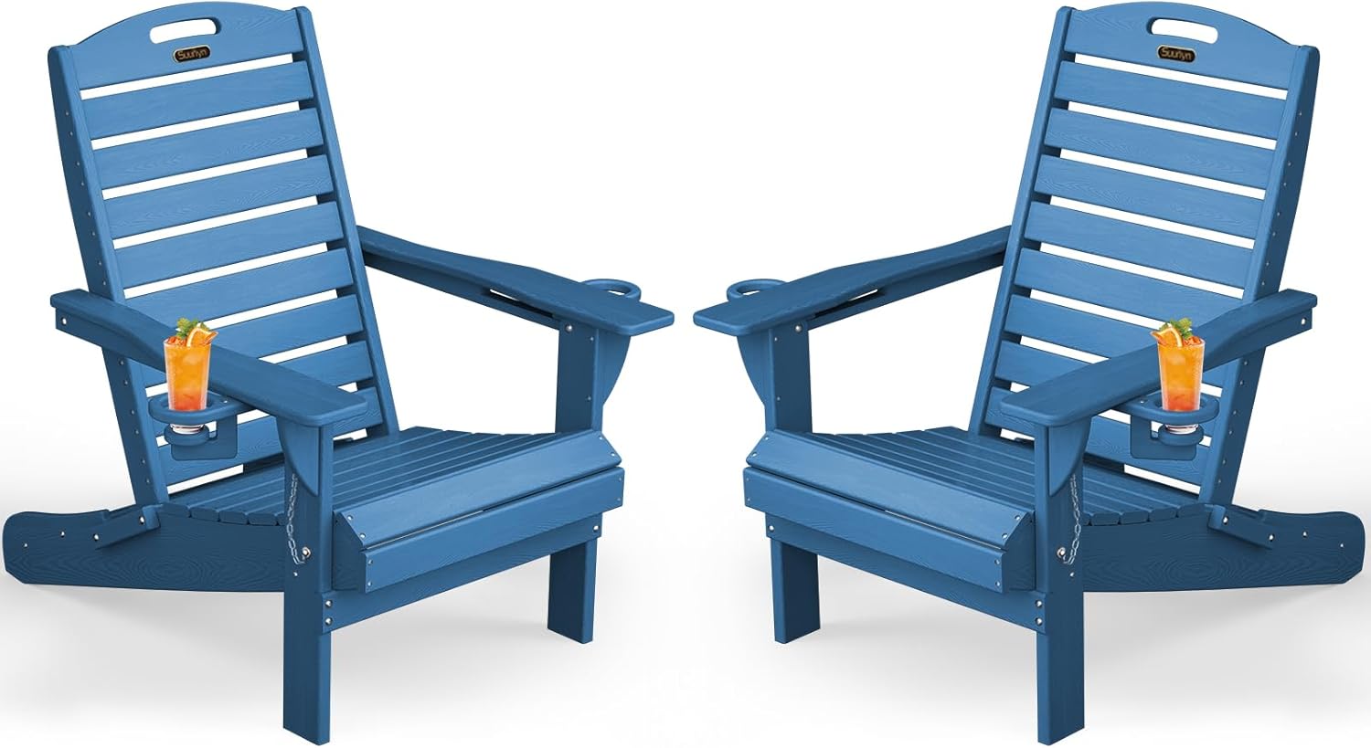 Adirondack Chairs Set of 2, Outdoor Fire Pit Chairs, HDPE All-Weather Adirondack Chairs with Cup Holder, Lawn Chair for Deck, Patio, Garden (NavyBlue)