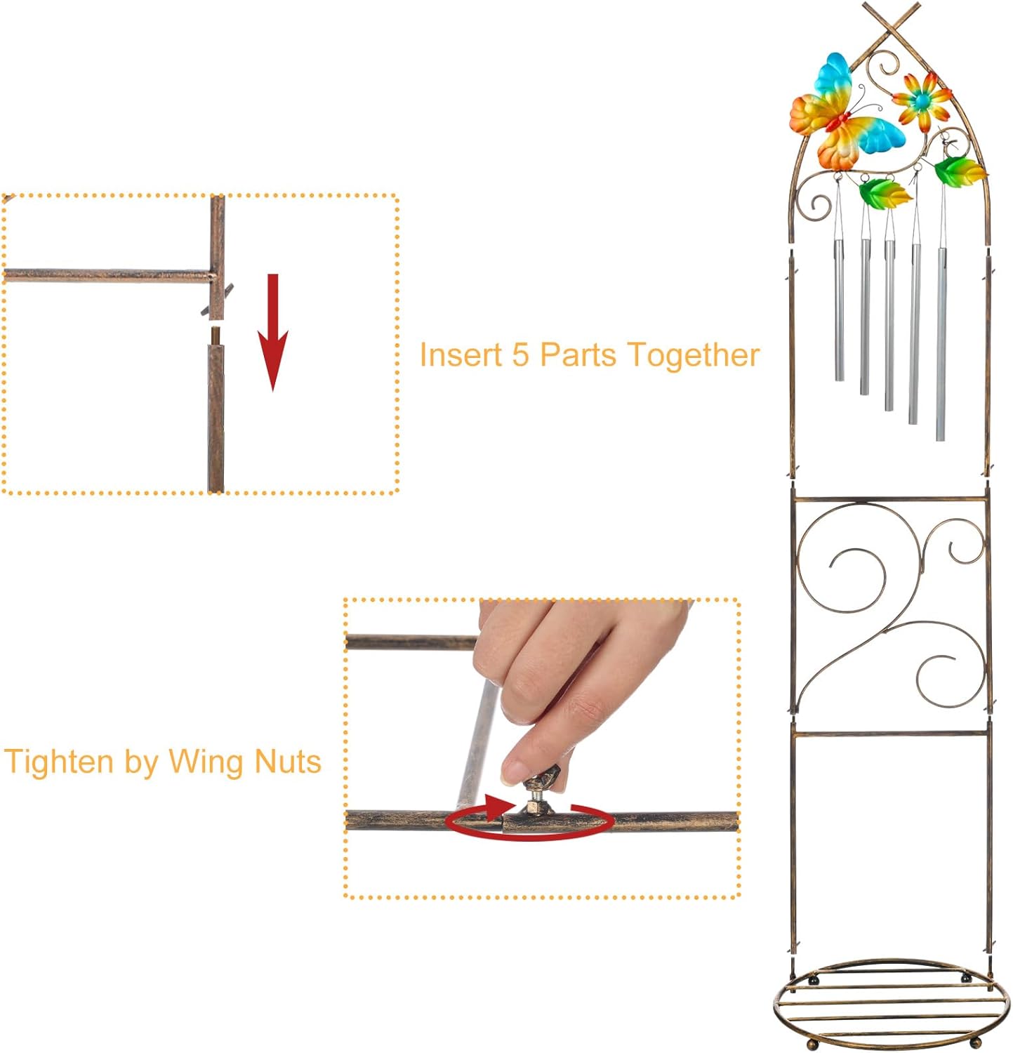 Garden Trellis with Plant Stands, 48” Metal Detachable Butterfly Plant Pot Trellis with Wind Chimes for Climbing Plants Outdoor Lawn Patio Porches Decor