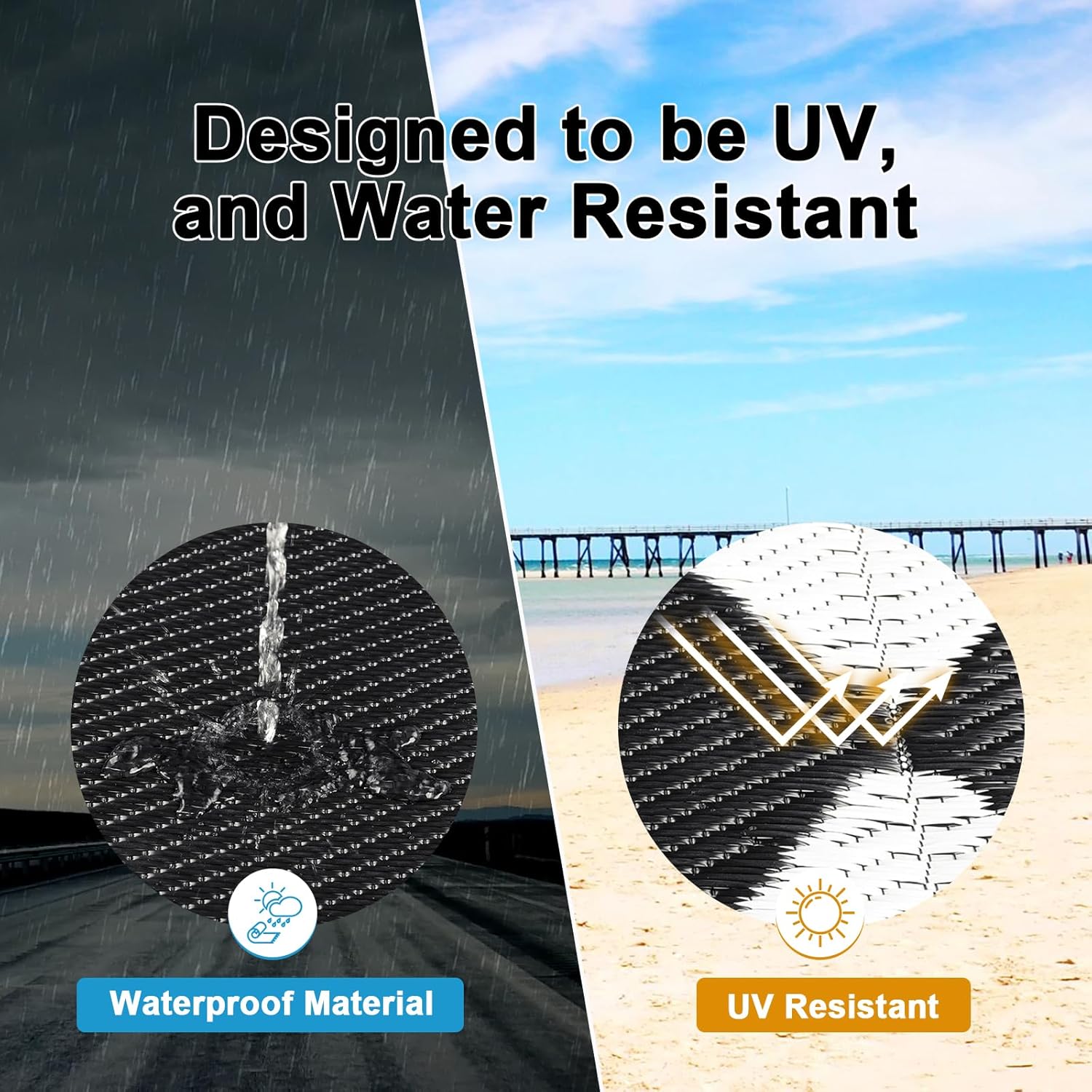 - Premium Material Outdoor Doormat: This reversible outdoor doormats are made from high quality recycled plastic straws and be woven tightly, durable enough, no fade, water resistant. It's soft and comfortable to walk on barefoot.Plus, the high-end UV coating and edge heat treatment technology prevent fading and sun damage without worrying about wear and tear.