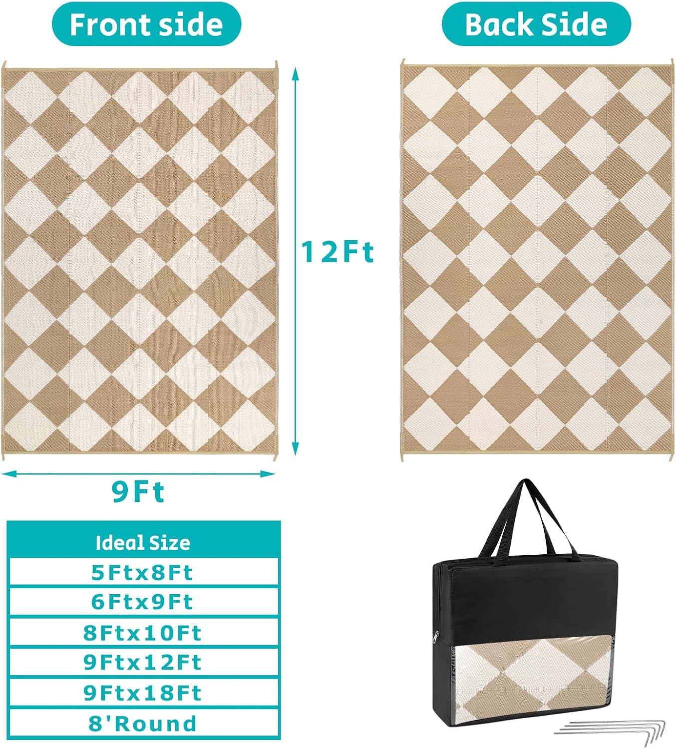 - Reversible Outdoor Rugs: Featuring a classic moroccan pattern on both sides, this rectangular 9x12 ft outdoor area rug allows you to instantly refresh your patio, porch, backyard, deck, RV campsite. And this outdoor deck rug is reversible, two-sided design allows you to have two different looks,both sides can blend perfectly with nature and look very full and comfortable.