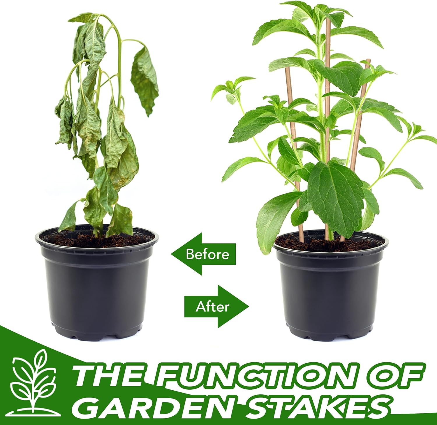 - Easy Installation: Bamboo stakes are flexible and can be cut to fit any plant size, then insert sturdy plant stakes into the ground and use twist ties to secure the plants. It can be combined with a variety of gardening decorations, such as flower pots, stones, light strings, garden signs, etc. to create a unique gardening landscape