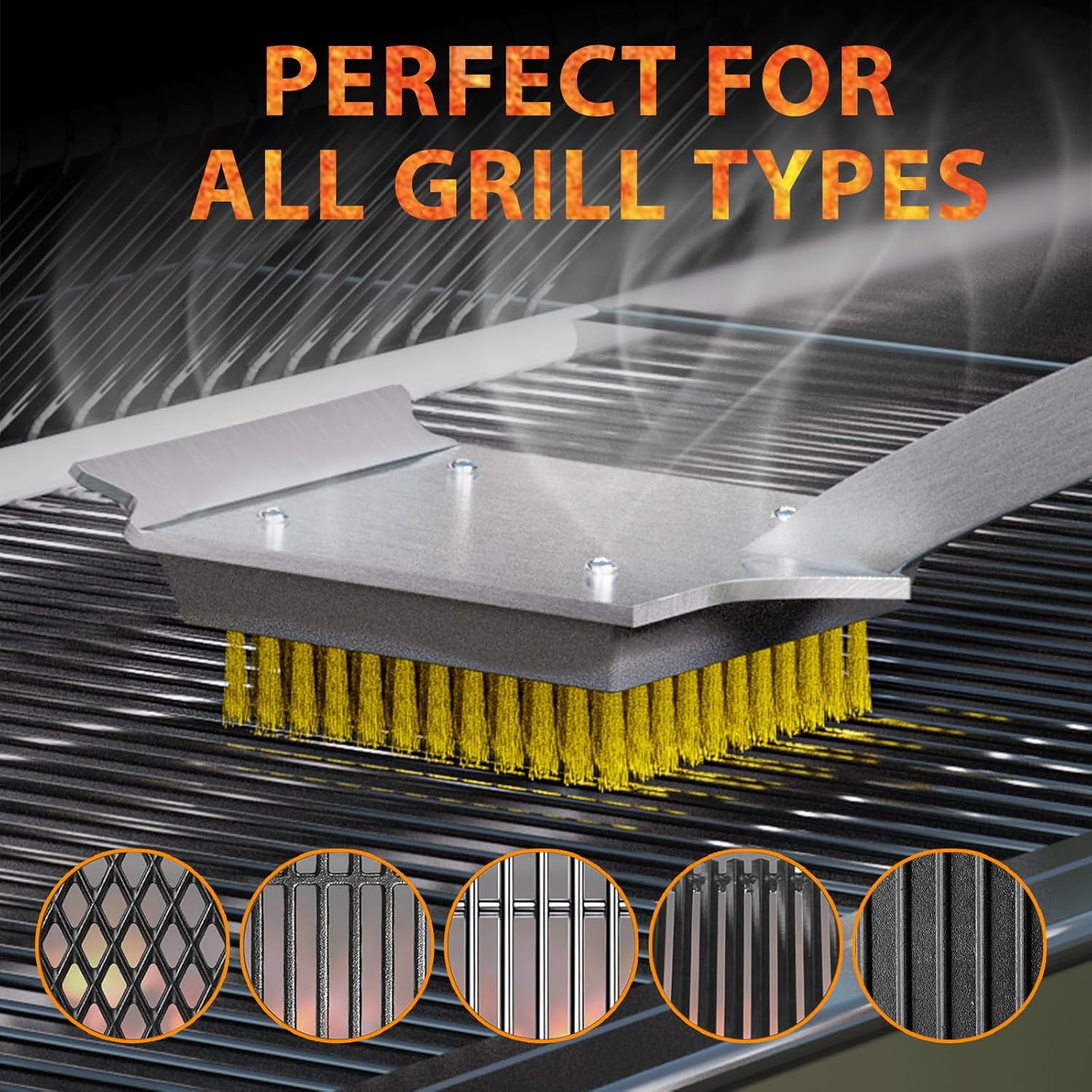 - Grill Brush and Scraper Set: The grill brush and scraper for barbecue set comes with a set of grill brush (including brush head) and a replaceable copper wire brush head (including screws and screwdriver). No need to worry about not having the tools to replace the brush head, we have provided you with everything