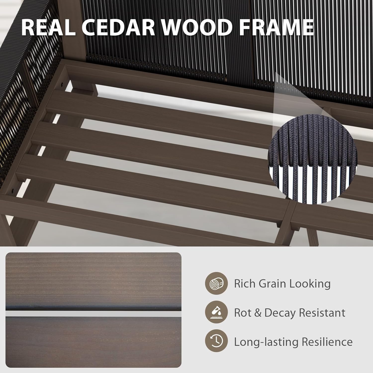 - PREMIUM NATURAL CEDAR WOOD: Crafted with natural cedar wood, this patio furniture set is the perfect blend of strength and style, adding a rustic charm to any outdoor setting. Cedar’s durability makes it resistant to rot, decay, and insect damage, ensuring long-lasting resilience and beauty.