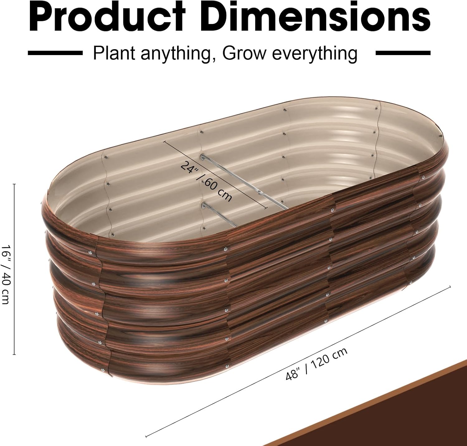 - 【Safety-Friendly】Our outdoor metal planter box feature an oval design with smooth edges to effectively avoid the risk of cuts, providing you with a safe gardening experience. Whether you're planting, watering, or performing daily maintenance, you can operate with peace of mind. Even if your children or pets are playing around the metal planter box, there's no need to worry.