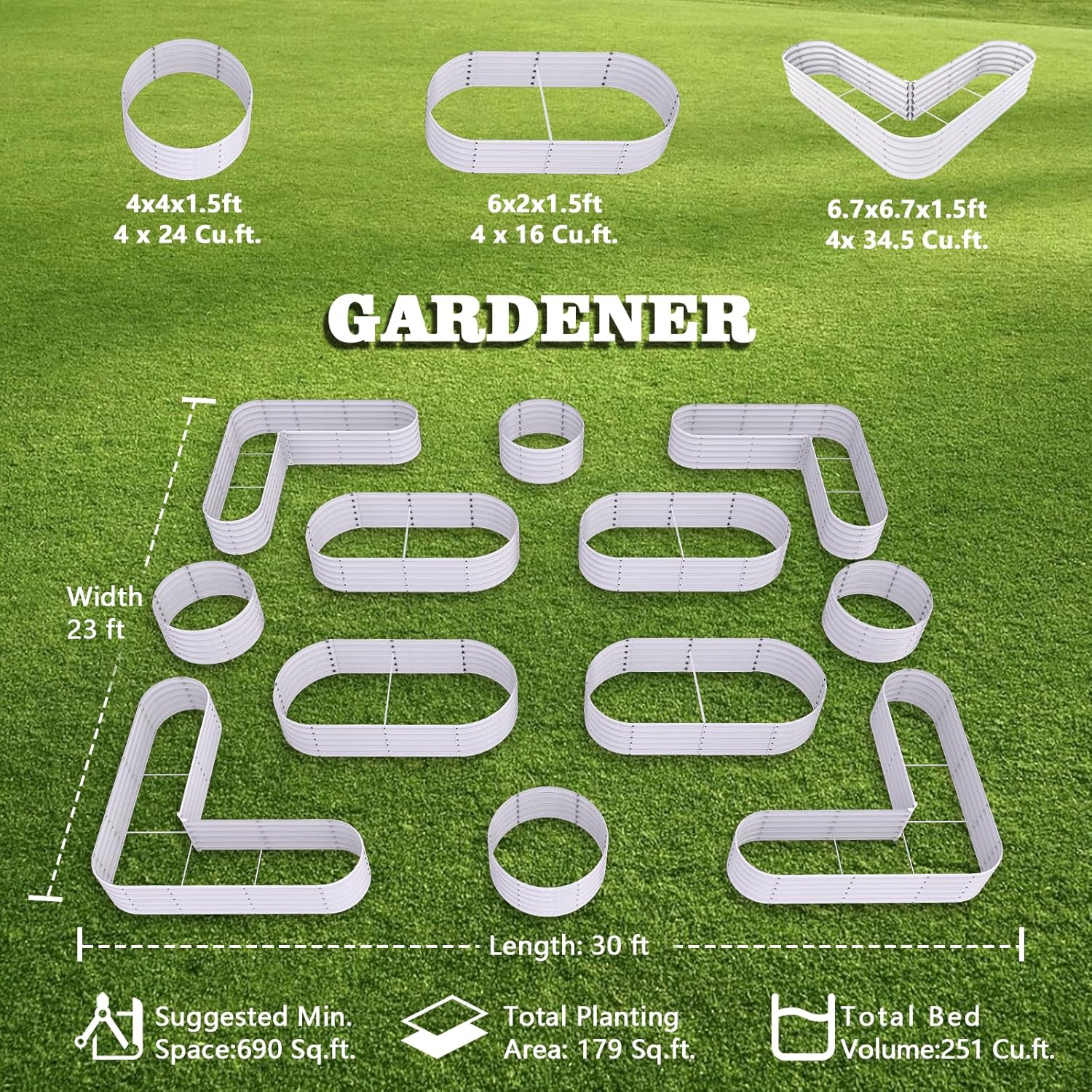 A ANLEOLIFE 12-Pack 4X4X1.5ft & 6X2X1.5ft & 81x81x18 in Deep Root Galvanized Raised Garden Beds Outdoor for Planting Vegetables Flowers Herb, Antique White