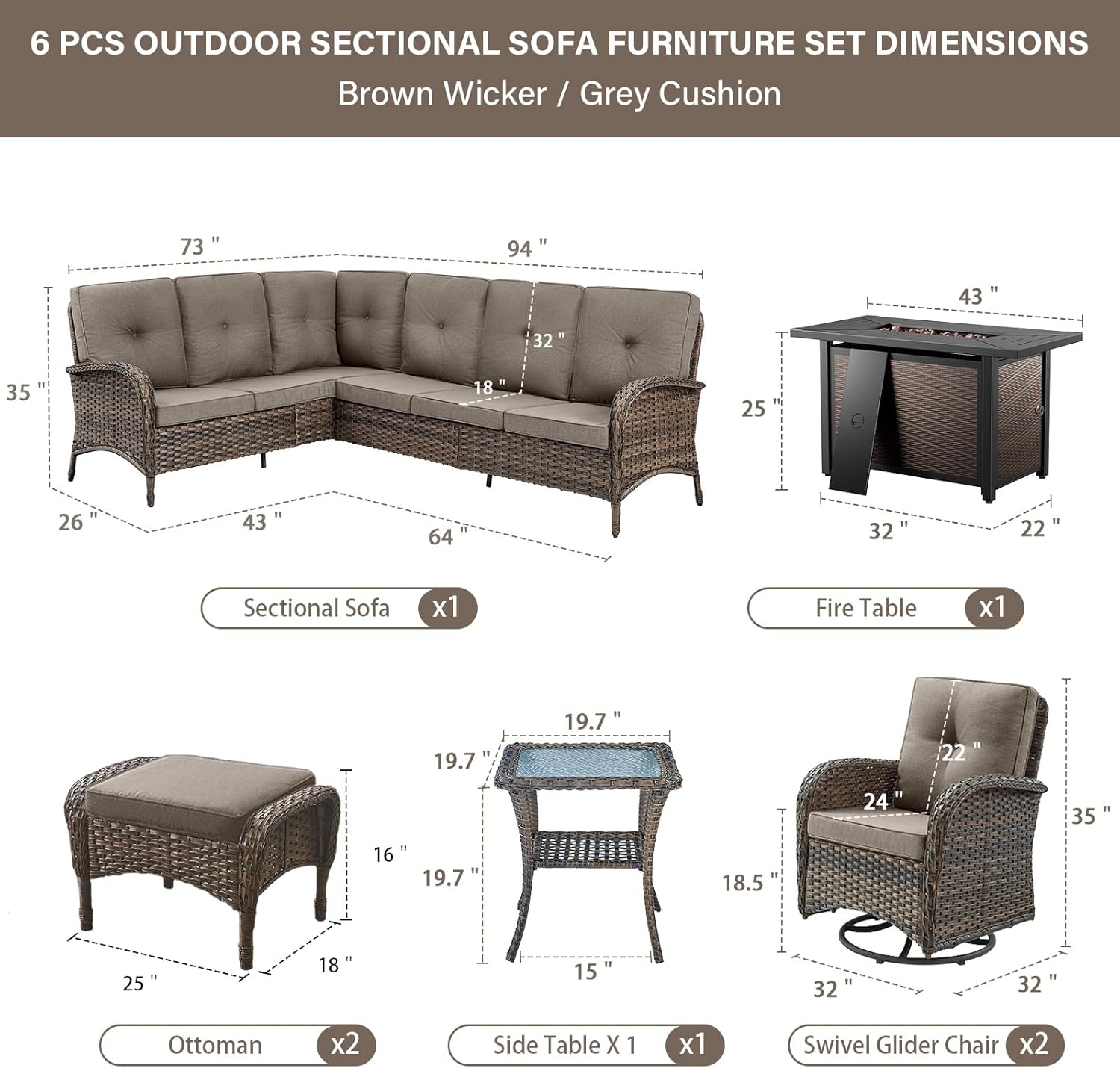 - Complete Patio Furniture Set Details: Elevate your outdoor space with this luxurious 8-piece patio furniture set, featuring an outdoor L-shaped sectional sofa, two swivel rocker chairs, a matching side table, two ottomans, and a 43-inch fire pit table. Perfect for gatherings or cozy evenings, Belord outdoor patio furniture set with fire pit table blends functionality, comfort, and style seamlessly.