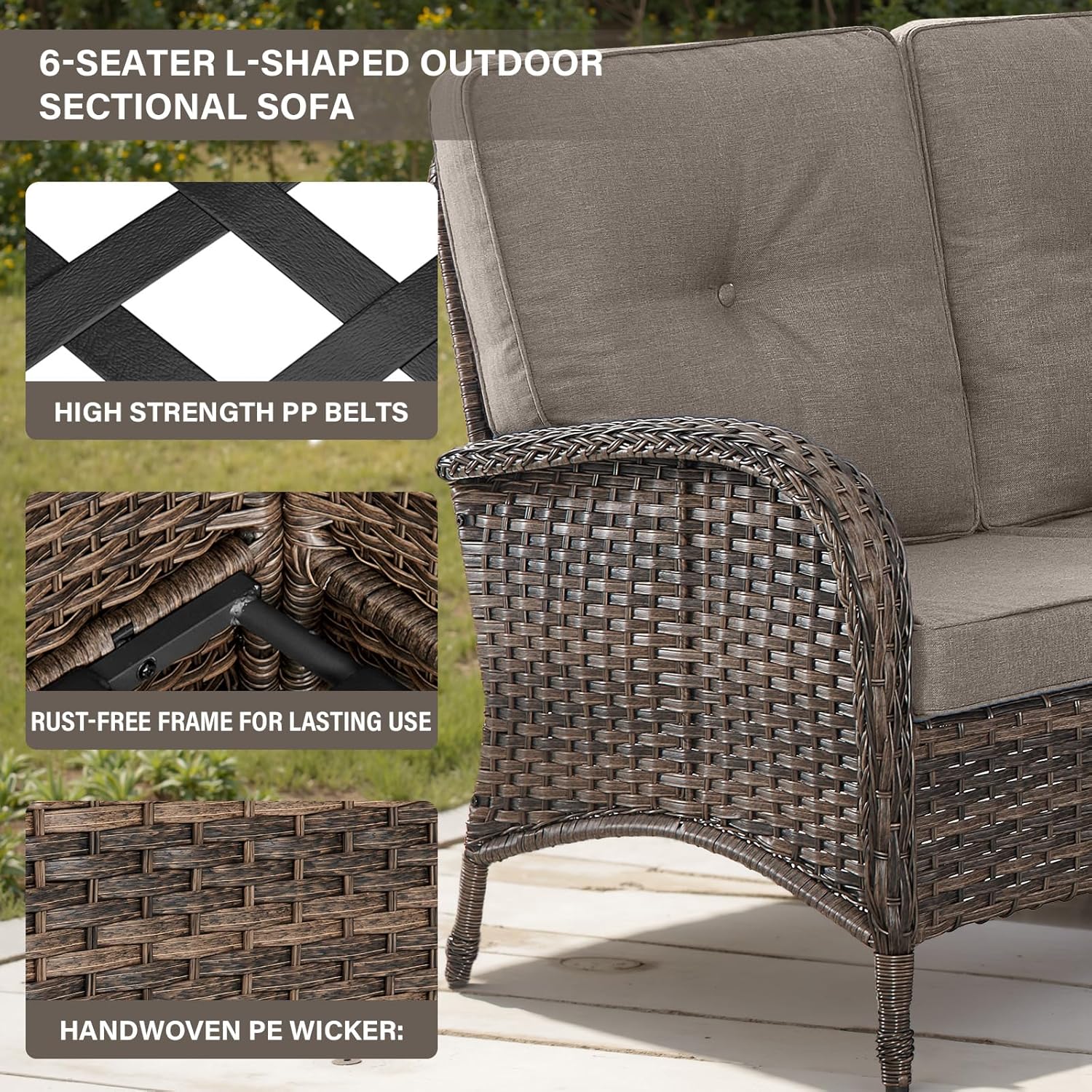 - Flexible Layout Options: Arrange the sectional, chairs, and tables in multiple configurations to suit your space. This outdoor furniture set is perfect for porches, decks, poolside, or backyard settings, offering endless versatility for entertaining or relaxing.