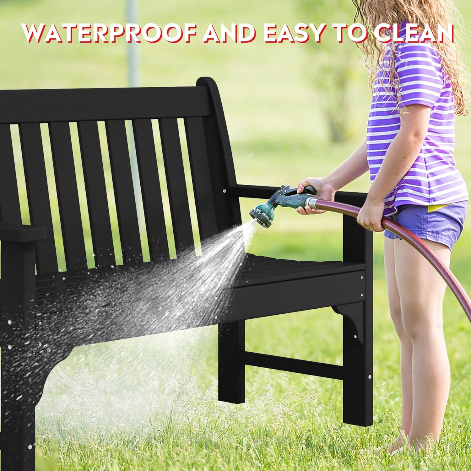 Garden Bench, Farmhouse Park Front Porch for Entryway Bench Outdoor Seating Low Bench Patio Bench Outside/Indoor, Black