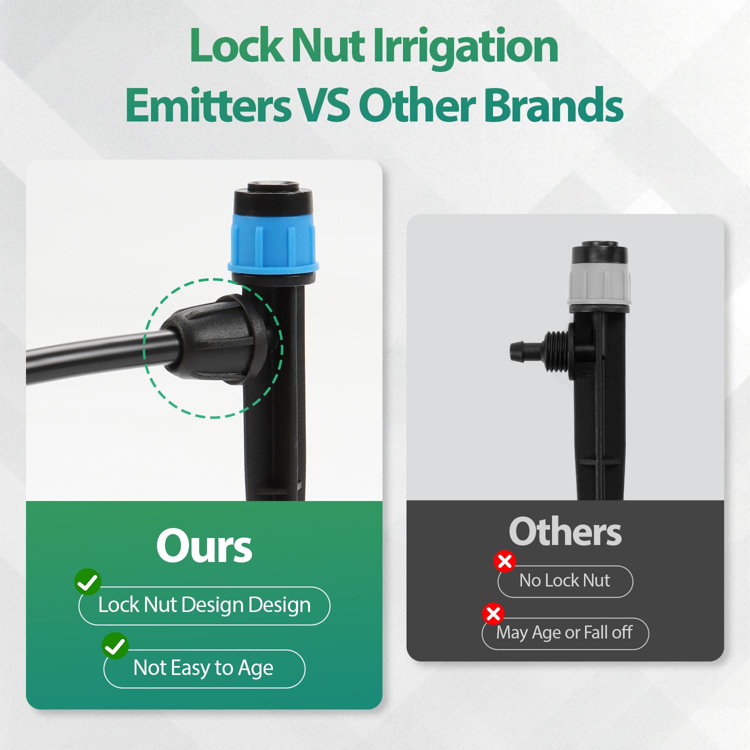 - 【Quick and Secure Installation】Our adjustable spray emitters are compatible with irrigation tubing ranging from 4mm (inner diameter) to 7mm (outer diameter). Enjoy hassle-free installatio—just connect the tubing directly to the emitter for a strong, secure fit. These connections are designed for durability and stability, reducing the chances of disconnection during use