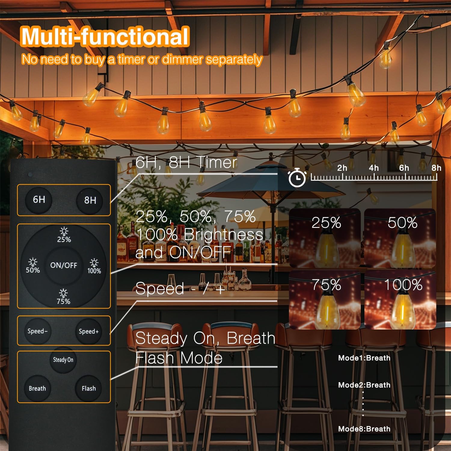 - Large Solar Panel: 50 feet solar lights outdoor string with a built-in 3 watt tempered glass solar panel for excellent charging performance in low light. ensuring your lights will operate well even on cloudy days