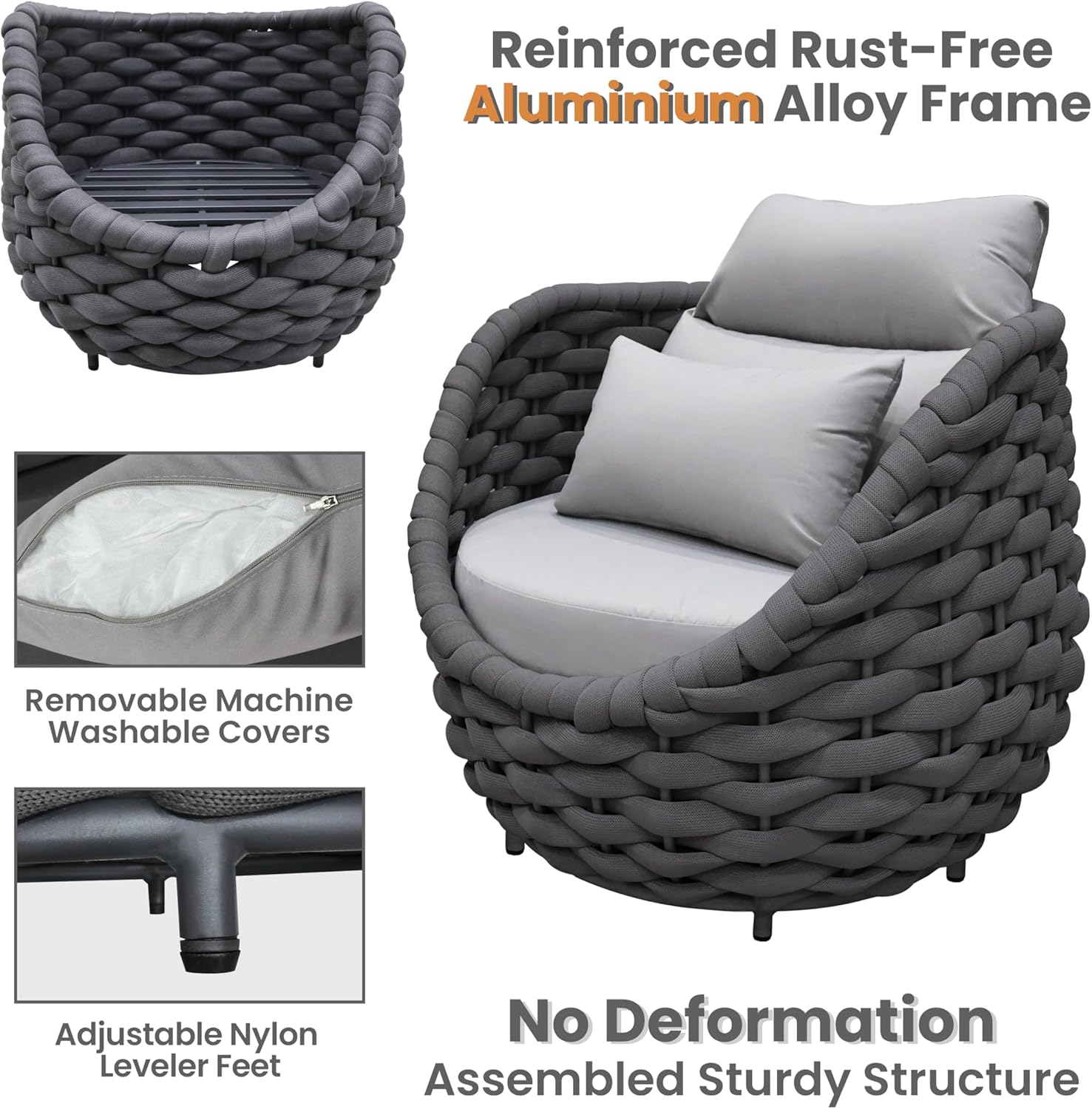 Front Porch Furniture Set: 5 Pieces Woven Rope Patio Conversation Set Aluminum - All Weather Cushioned Outdoor Sofa Set Assembled - Metal Modern Couch Set for 400lbs Deck Garden Poolside Hotel