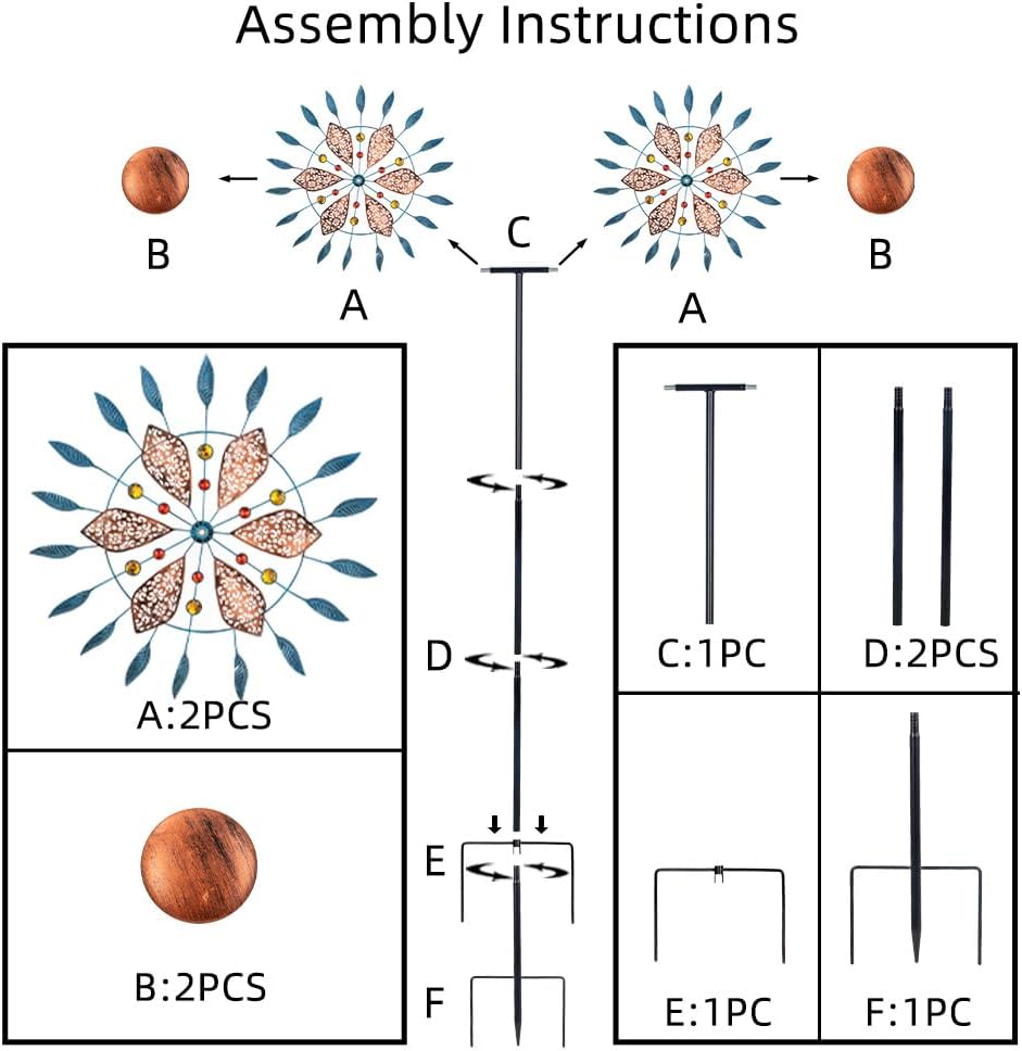 - Easy to Install:This wind spinners is easy to assemble with the instructions and no extra tools are needed. Because this one is large size wind sculptures, install the rod first and then install the blades, which is easier way