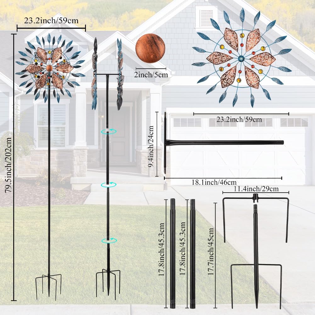 - Durable Garden Decoration:The large wind spinners outdoor is made of durable metal and exquisite welding technology. This yard art has long-lasting waterproof and rust resistant coating, which can be used in various weather conditions