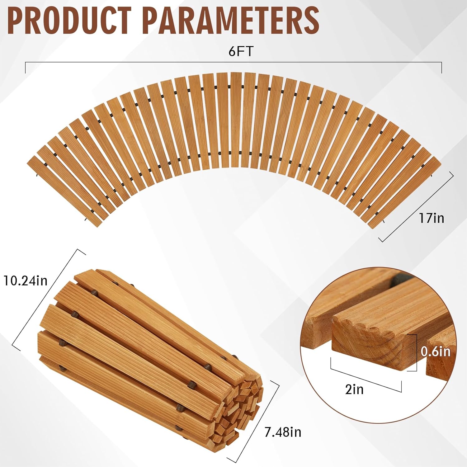 - Multiple Size Options: Wooden flooring comes in 3 sizes and 2 colors to choose from. Among them, the 6-foot ones are fan-shaped, while the 8-foot and 12 foot ones are straight, and you can assemble them according to your own garden