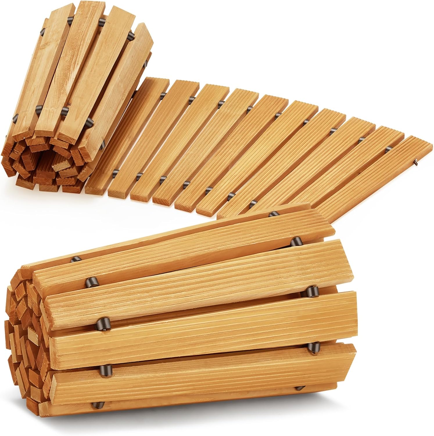 - Secure Connection: Each wooden board in this wooden walkway is connected by two rows of heavy-duty rubber ropes to ensure a secure connection and prevent easy scattering. Rubber gaskets are resistant to aging and can be used for a long time without maintenance. In addition, the wooden floor can be easily rolled up for storage and is also very convenient to carry, making it easy to place in the trunk of a car