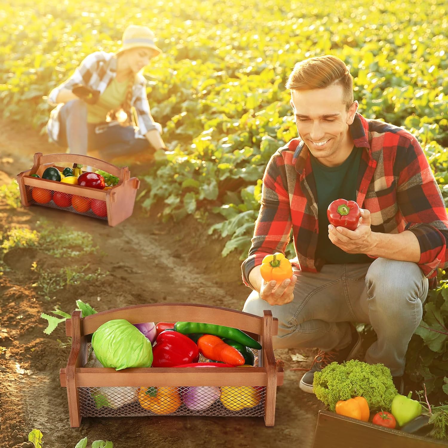 - Sturdy Construction: the garden hod harvest basket crafted from robust pine wood and rustproofed mesh wire bottom, exemplifies durability and longevity, ensuring it can withstand the weight of harvested produce and the rigors of agricultural use; Manually handcrafted to refine a smooth finished that boosts its natural appeal. Designed with quality in mind, the baskets are large and sturdy