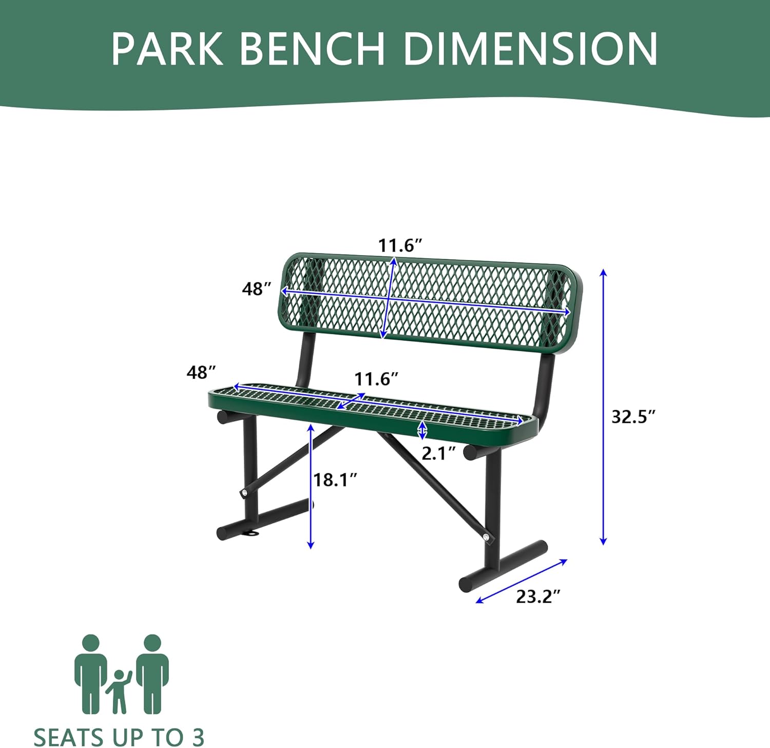 4/6/8 Feet Park Bench for Outside Heavy Duty Metal, Garden Benches Outdoor Bench with Backrest & Portable Frame, for Shopping Malls Stores Parks Patios Decks, Green