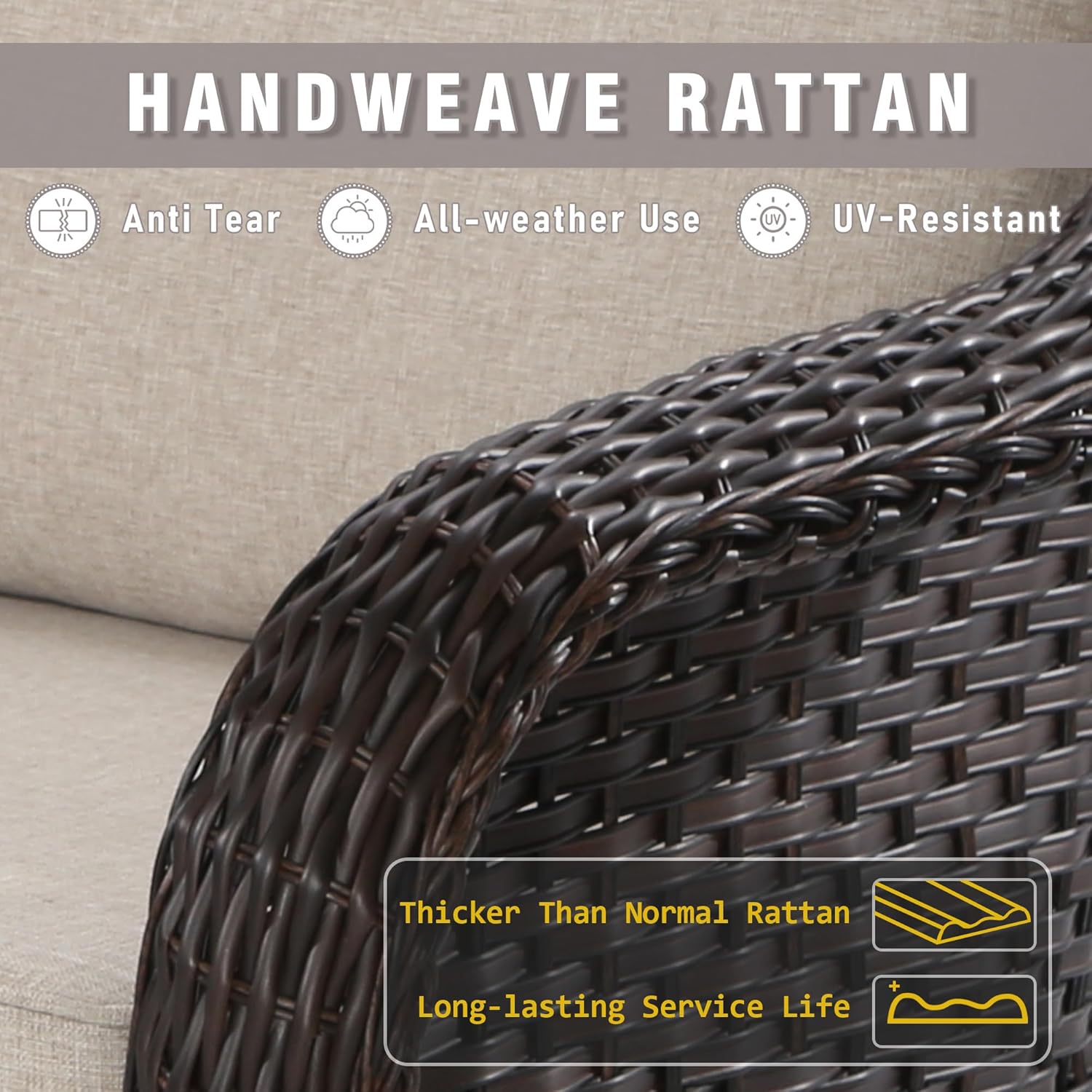 - PATIO WICKER SOFA: Qsoer Patio Wikcer Sofa use 100% handwoven PE rattan. Quality craftsmanship and a thicker rattan weave make it has longer service life, all-weather use and durable.