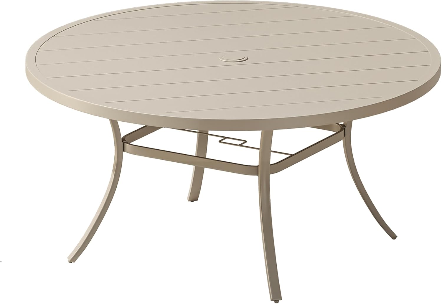 DIFY 53" Round Outdoor Patio Dining Table for 8, Metal Patio Table with 1.57" Adjustable Umbrella Hole, All-Weather Dining Furniture Table for Backyard Lawn Garden, Cream