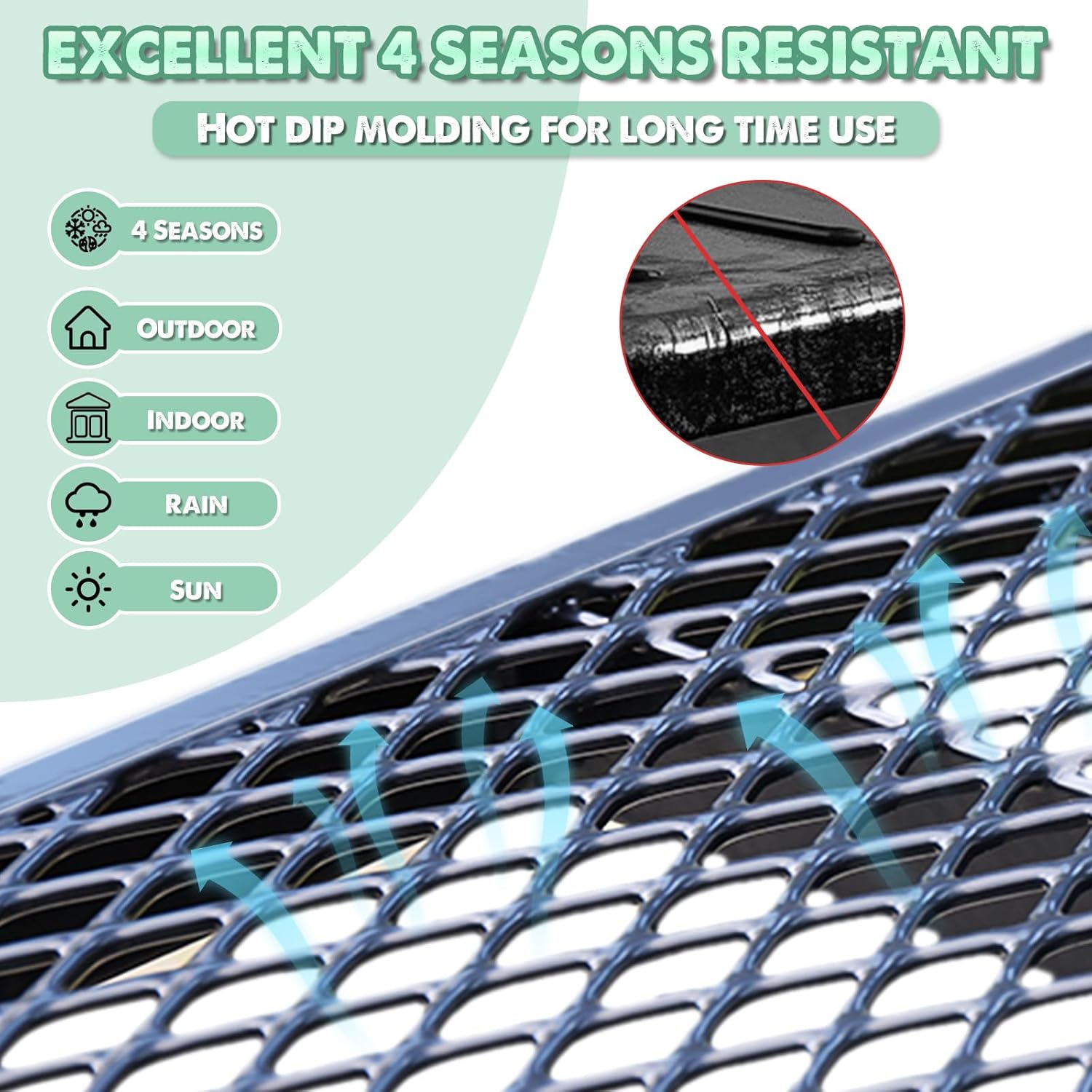 - Superior Craftsmanship: This 6 FT heavy duty park bench, sized at 48"-96”L x 23.2”W x 32.5”H, comfortably accommodates 2-7 people. Featuring a mesh cut-out design on the seat, it ensures both comfort and reduced weight, while stabilizing triangular supports provide a smooth seating experience.