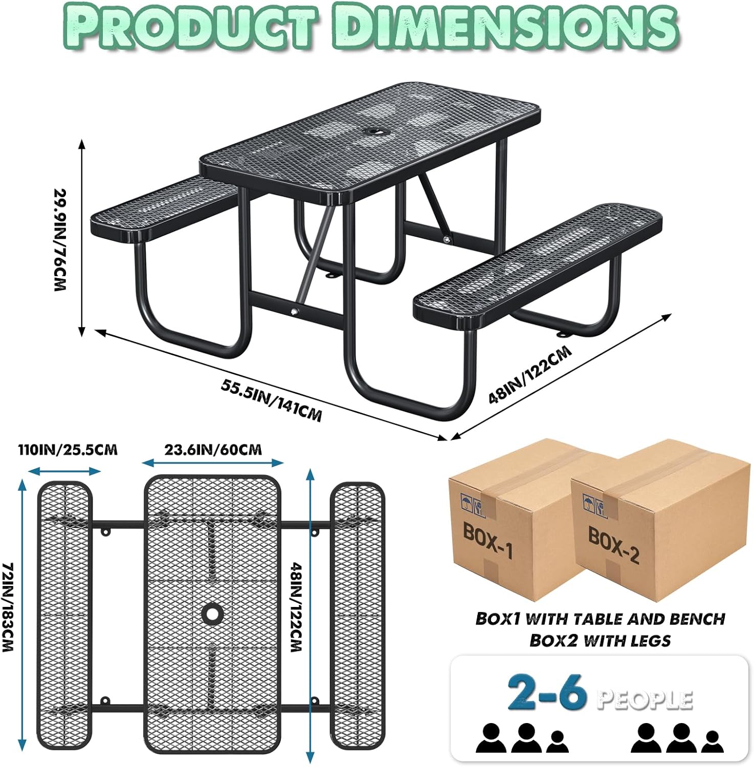 Heavy-Duty Park Bench or Table for Outside - Black Coated Outdoor Furniture Steel Bench, Commercial-Grade Outdoor Benches Weatherproof for Park, Patio, Porch (Black, 4FT (Rect. Table))