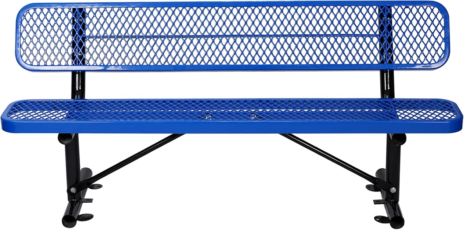 Heavy-Duty Park Bench or Table for Outside - Black Coated Outdoor Furniture Steel Bench, Commercial-Grade Outdoor Benches Weatherproof for Park, Patio, Porch (Blue, 6FT (with Backrest))