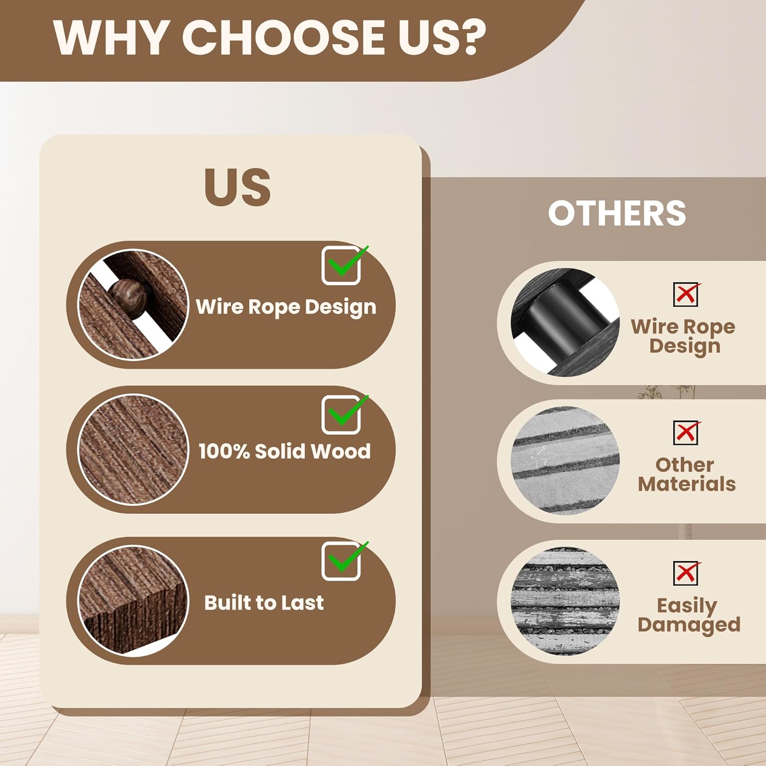 - 【Durable and Weather-Resistant】The solid wood construction withstands sun, rain and moisture without damage. Unlike cheaper alternatives, these planks won't chip or peel over time. The textured surface provides slip resistance in 1wet conditions.