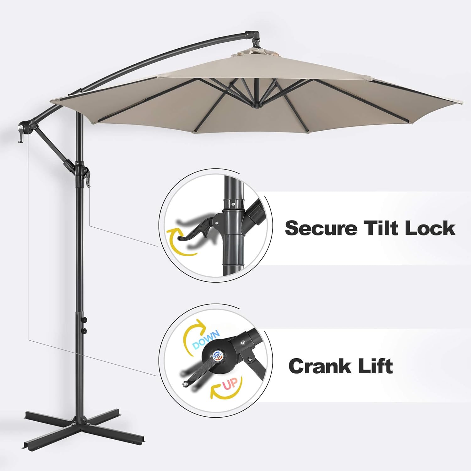- Note: This cantilever patio umbrellas come with a lightweight cross base (stand only) and requires a minimum 100lbs (45kg) weighted base or sandbags for safe, stable use (compatible bases: B0795SD1JS, B0CKSG7M4W). Protect your investment from rain, snow, and wear with our durable weatherproof cover (B0DRYPXVDW) to double its lifespan—because luxury shade should last