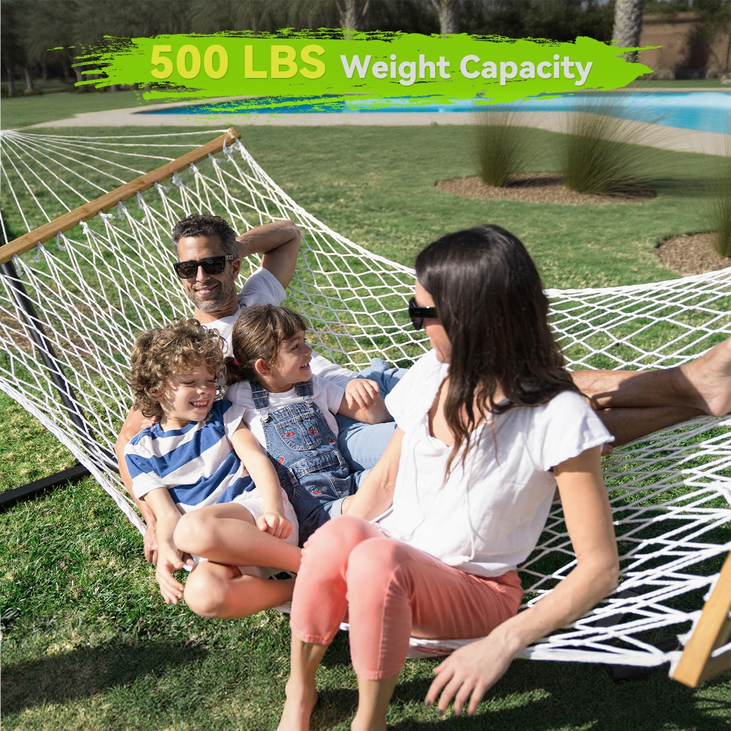 - Spacious Double Hammock for Two:With a generous 74.8 x 55.1-inch (190x140 cm) bed size and a 122-inch (3.1 m) total length, this hammock comfortably fits two adults. The 450-lb (204 kg) weight capacity ensures durability and safety, perfect for couples or family relaxation. Includes two 13.78-inch chains, extending the total length to 150 inches (3.8 m) for flexible hanging distances—refer to product images for setup guidance.