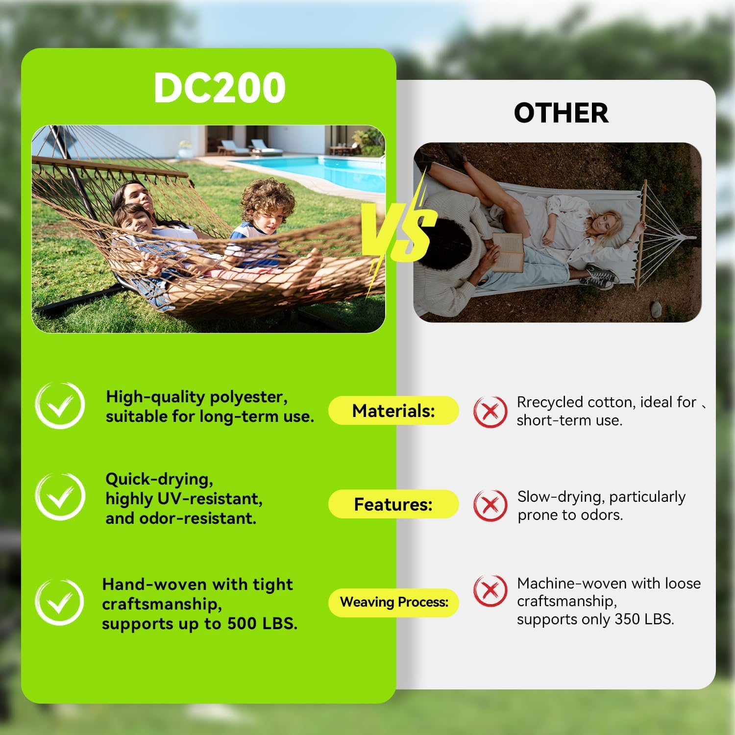 - Handwoven Comfort with Hardwood Support:The breathable polyester mesh design keeps you cool, while reinforced hardwood spreader bars provide stability and a flat, supportive surface. Combines durability with cloud-like comfort!