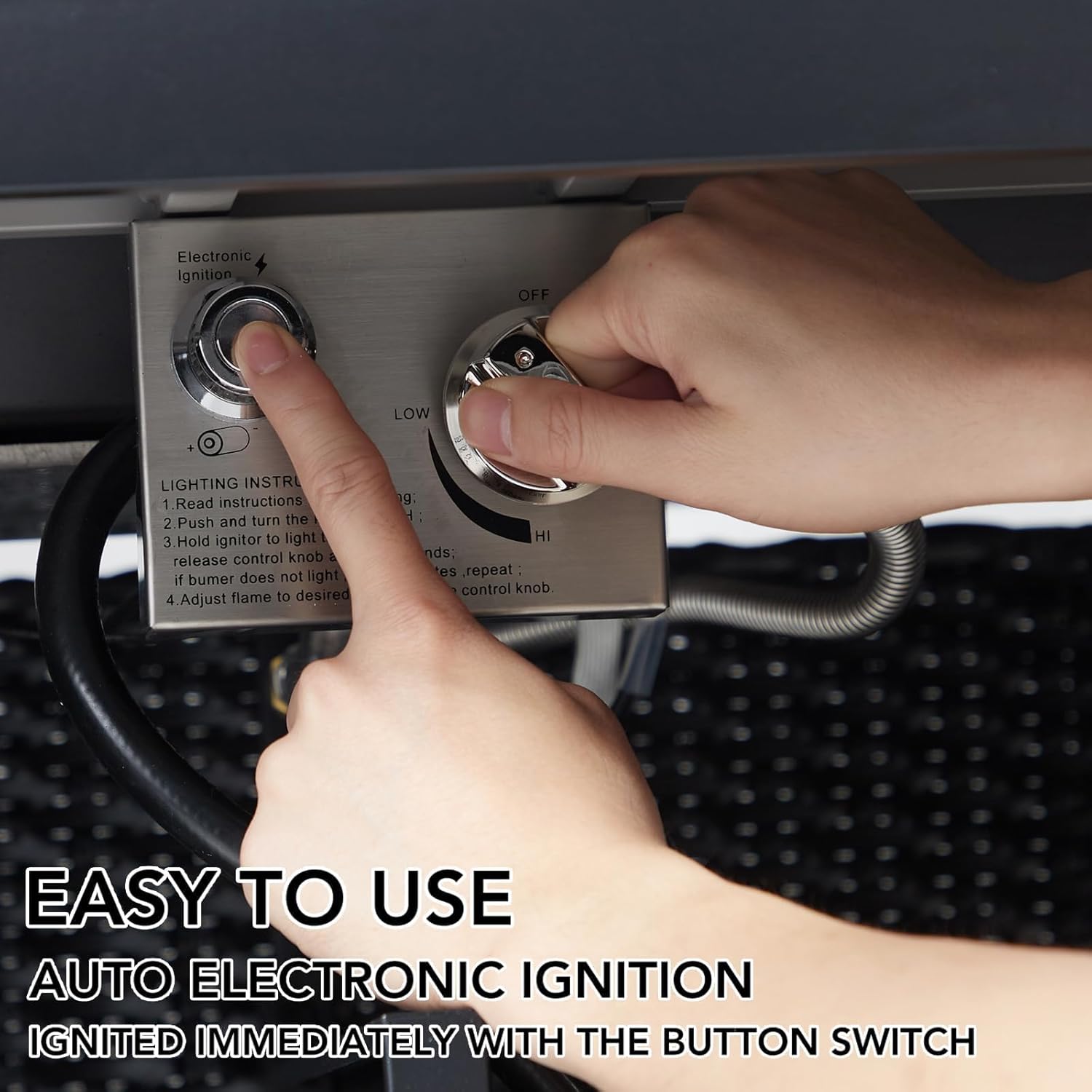 - 🔥Unique industrial design: Crafted from sturdy steel and featuring a unique slate tabletop, this fire table boasts a double-sided cover (metal or slate) that adds a touch of elegance to your garden. Hidden chrome manual control valve allows 100% smoke free variable flame height. With a simple push at the pulse switch and a turn at the valve knob, the electronic ignition system can start a beautiful fire in no time