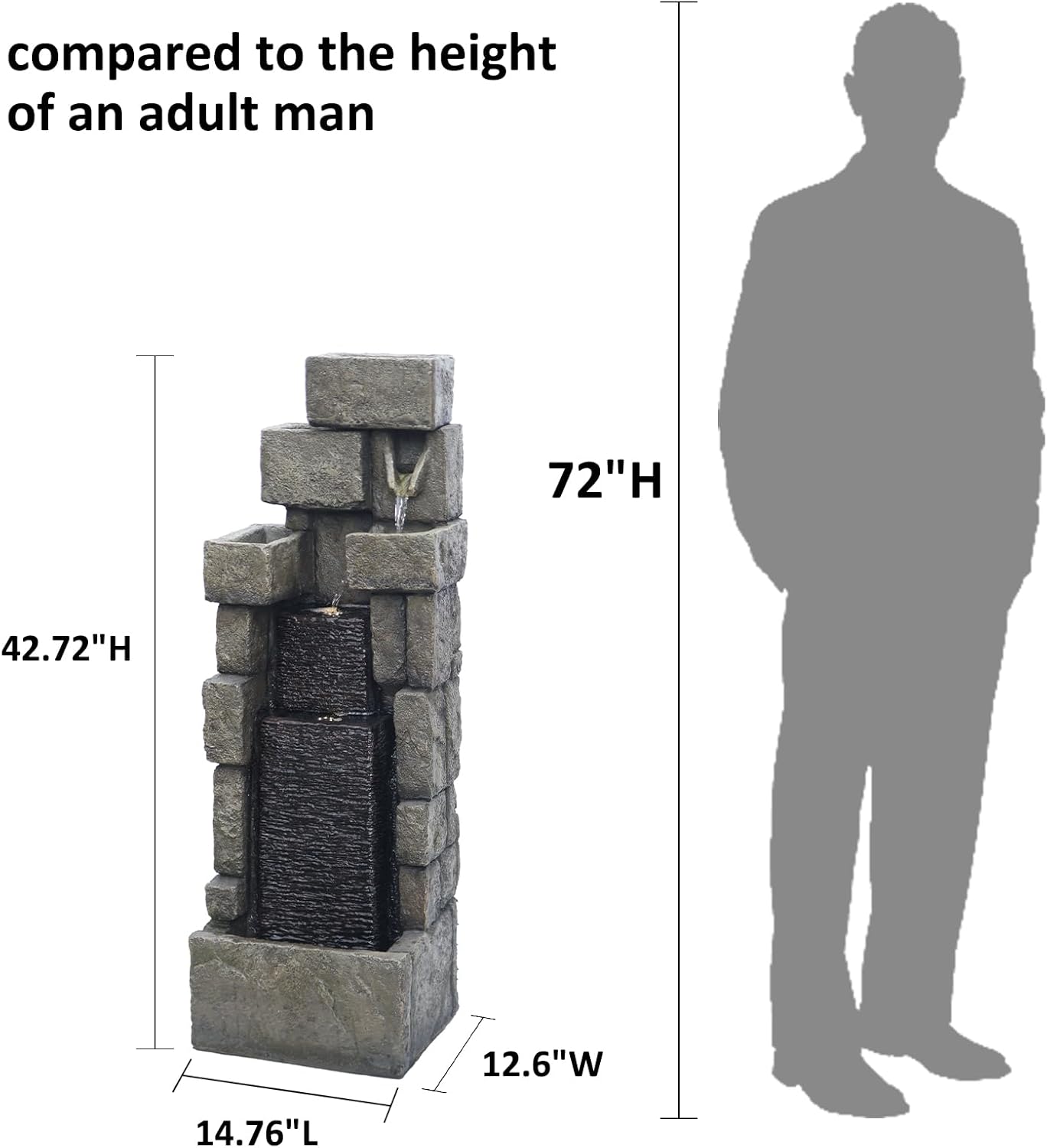 YZM 42.72" H Modern Stacking Bricks Water Fountain Outdoor Cascading Waterfall Fountains with Led Lights for Gardens Landscaping Patios Balconies and Lawns Decor for Outside