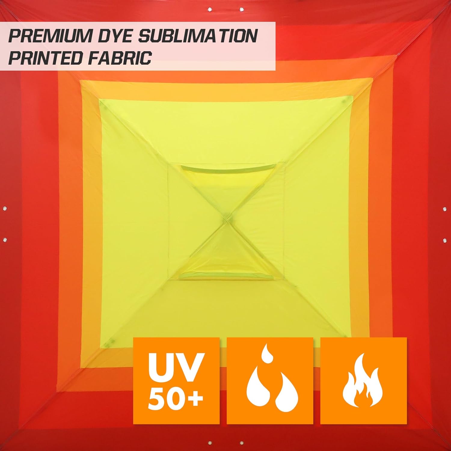 - VIBRANT SUBLIMATED FABRIC: Bring bold, colorful designs and fun colors to your next outdoor party or event. Stand out from the crowd with our unique ShadeGraphix 100% coverage, digitally-printed sublimated canopy tents. Be bold. Be Different