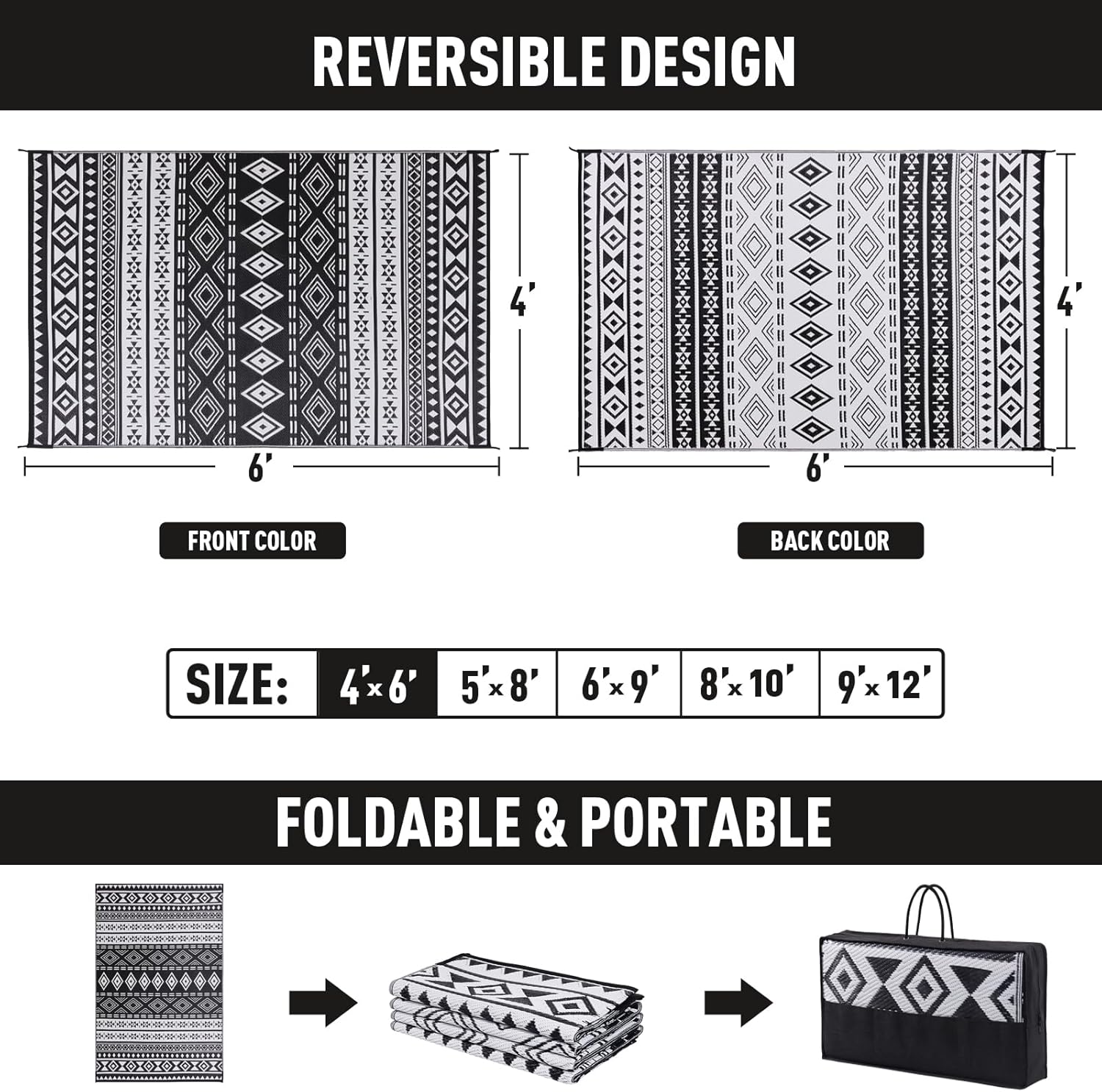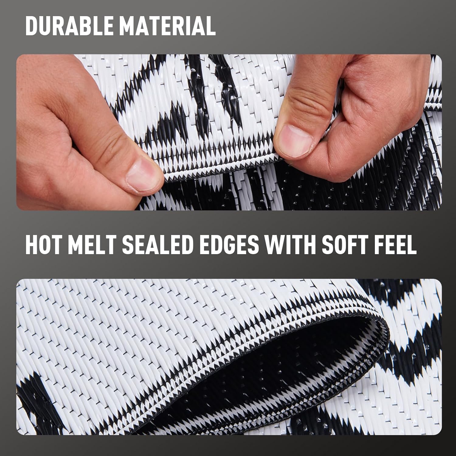 WILDROOTS 5x8 Feet Black and White Plastic Outdoor Rug, Stain Resistant Waterproof Reversible Outdoor Patio Rug, Fade Resistant Camping Rug