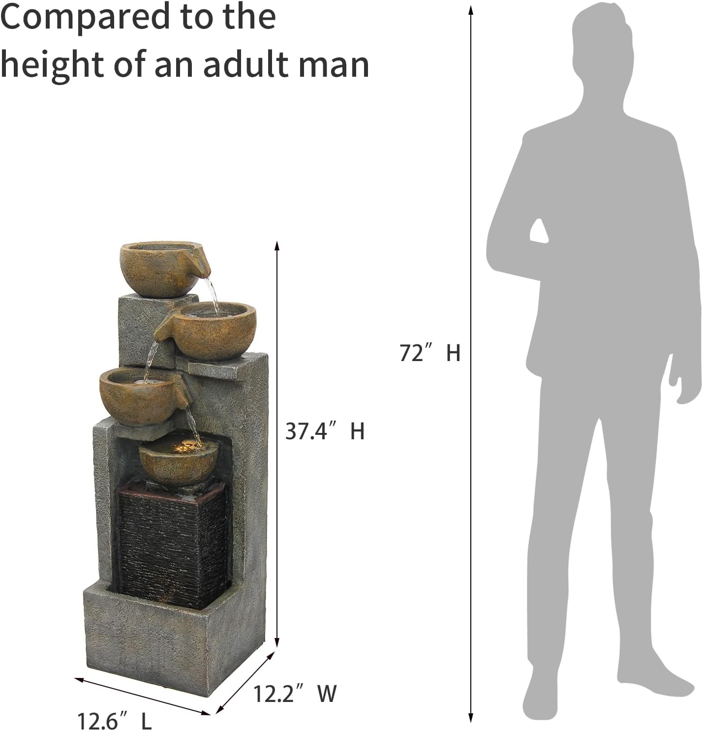 - Suitable Fountain Size: YZM modern cascading bowl fountain will add instant beauty to your garden and home decor. It measures 12.6 "L x 12.2 "W x 37.4 "H and is perfect for use in your home, office, patio, yard, garden, deck and porch