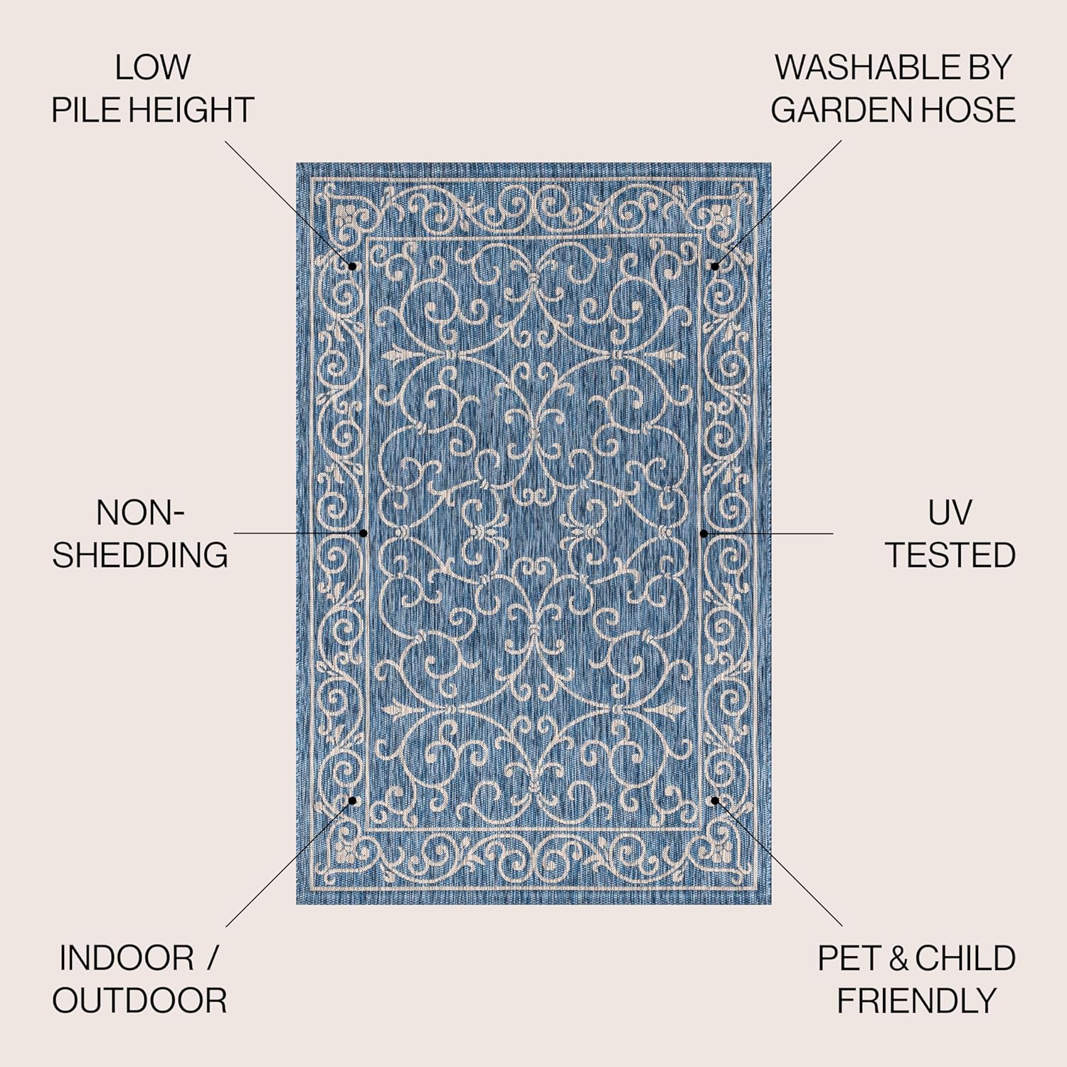 - Durable & Water-Resistant: The flat-weave construction of 100% polypropylene provides water resistance and a 0.19-inch pile, making it ideal for indoor and outdoor use.