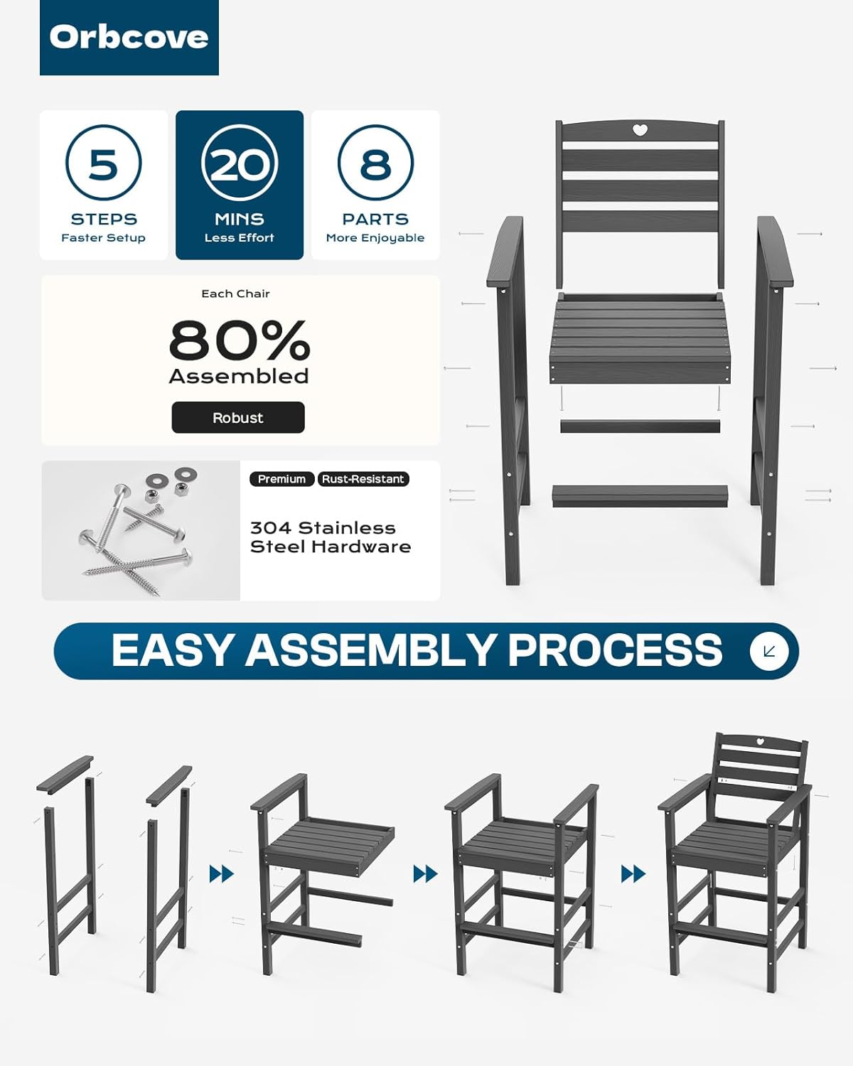 - Hassle-Free Assembly & Maintenance: Quick assembly with clear instructions and included hardware. The waterproof, fade-resistant surface ensures Orbcove outdoor bar table and chairs set requires minimal maintenance—just wipe it with soap and water patio bar set to keep it looking new.