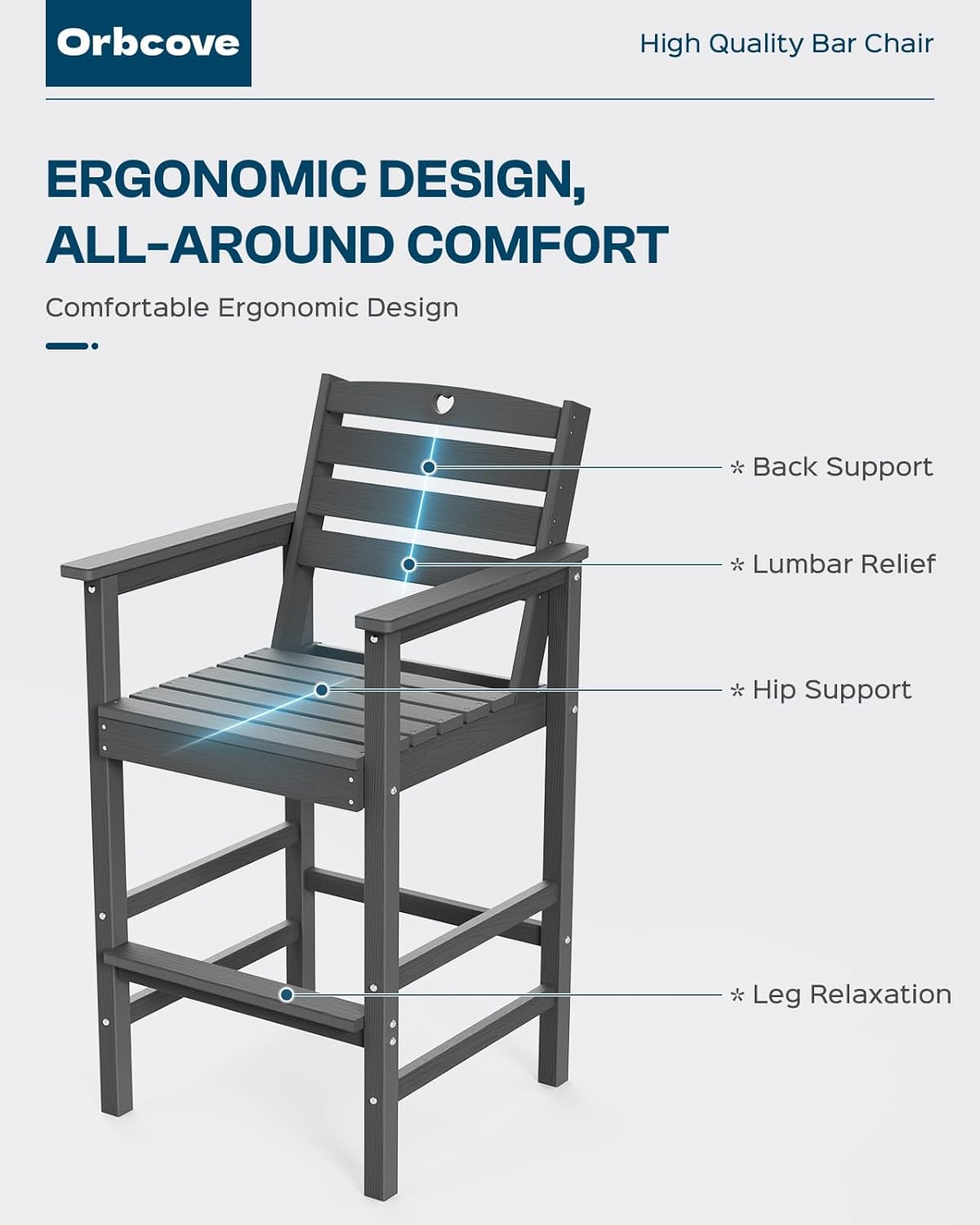 - Durable All-Weather Design: (Please note!!!Your order consists of two or three separate packages, which may be delivered at different times.) Crafted from HDPE with a natural wood grain finish, Orbcove bar table and chairs set withstands sun, rain, and wind without fading or cracking. Ideal for deck furniture, backyard furniture, or porch furniture, it’s perfect for year-round outdoor living.