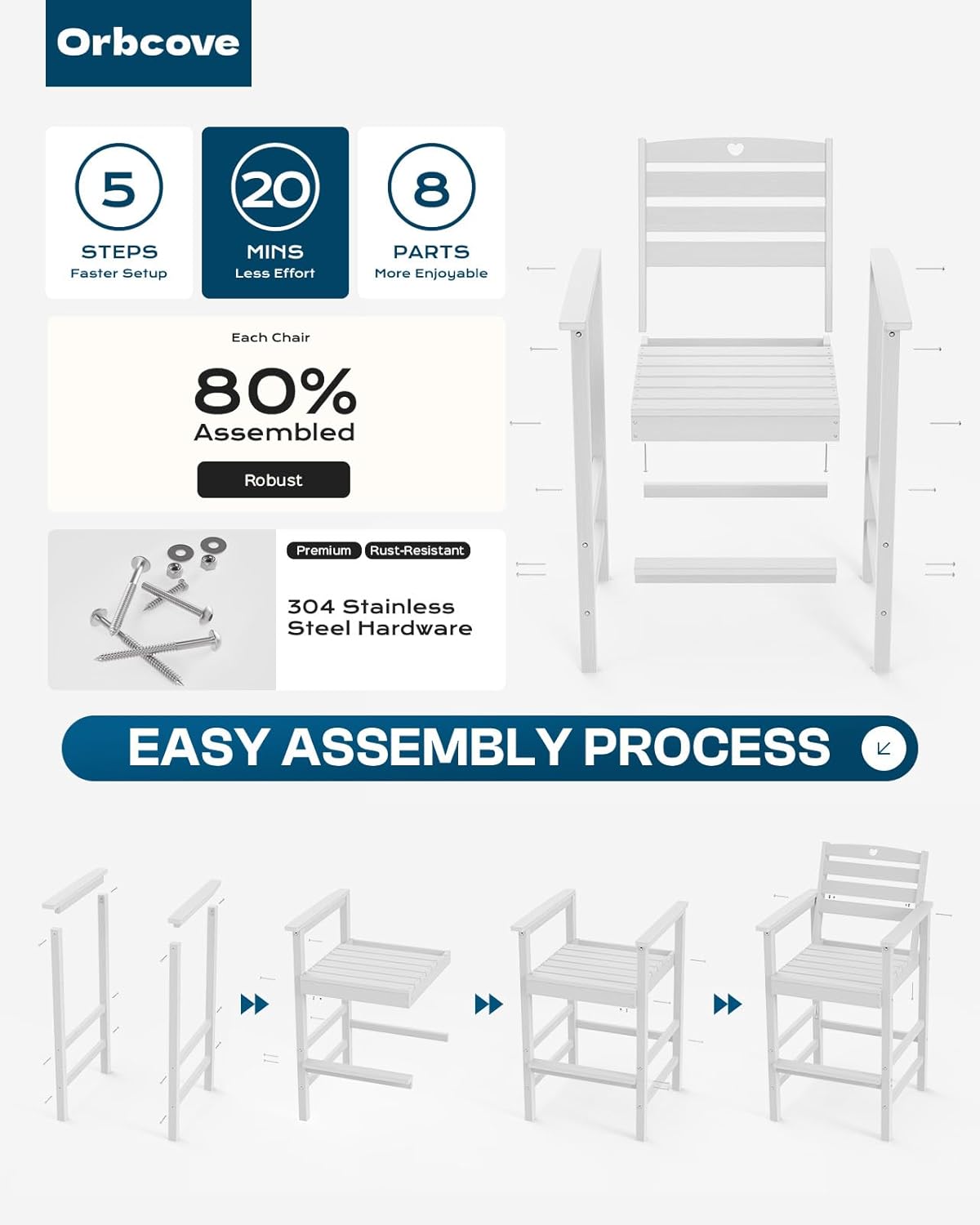 - Hassle-Free Assembly & Maintenance: Quick assembly with clear instructions and included hardware. The waterproof, fade-resistant surface ensures Orbcove outdoor bar table and chairs set requires minimal maintenance—just wipe it with soap and water patio bar set to keep it looking new.